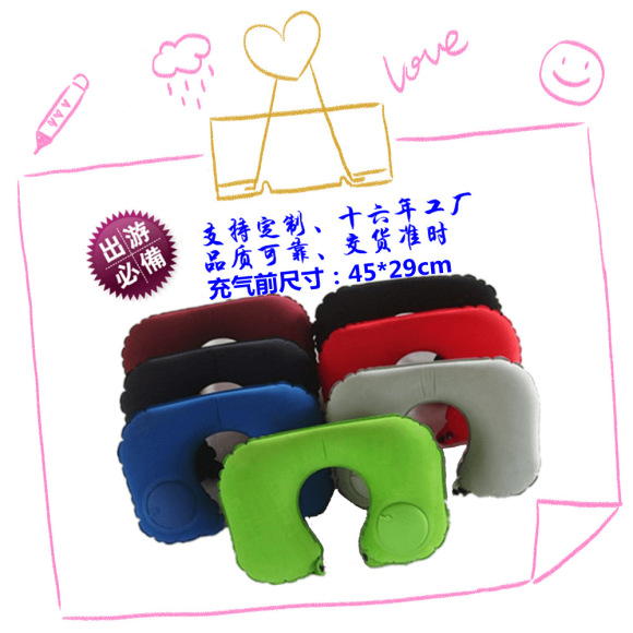 充气枕充气前尺寸43.5*27.5cm/材质为0.18mmPVC进行植绒(出口常规料、上海料)、单只OPP袋装、500只/箱、箱规为54*47*37cm/毛净重约26KG25KG