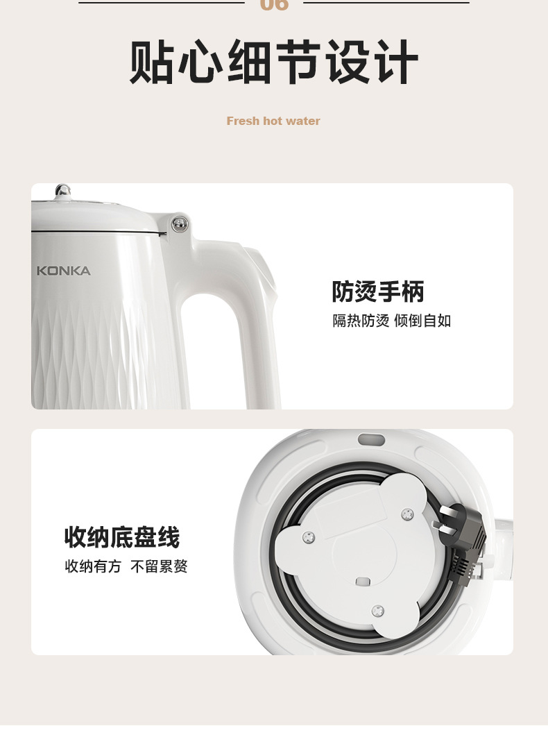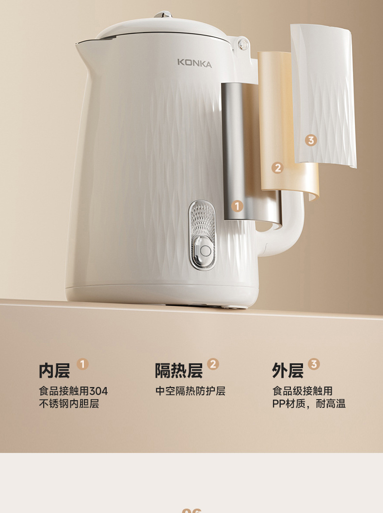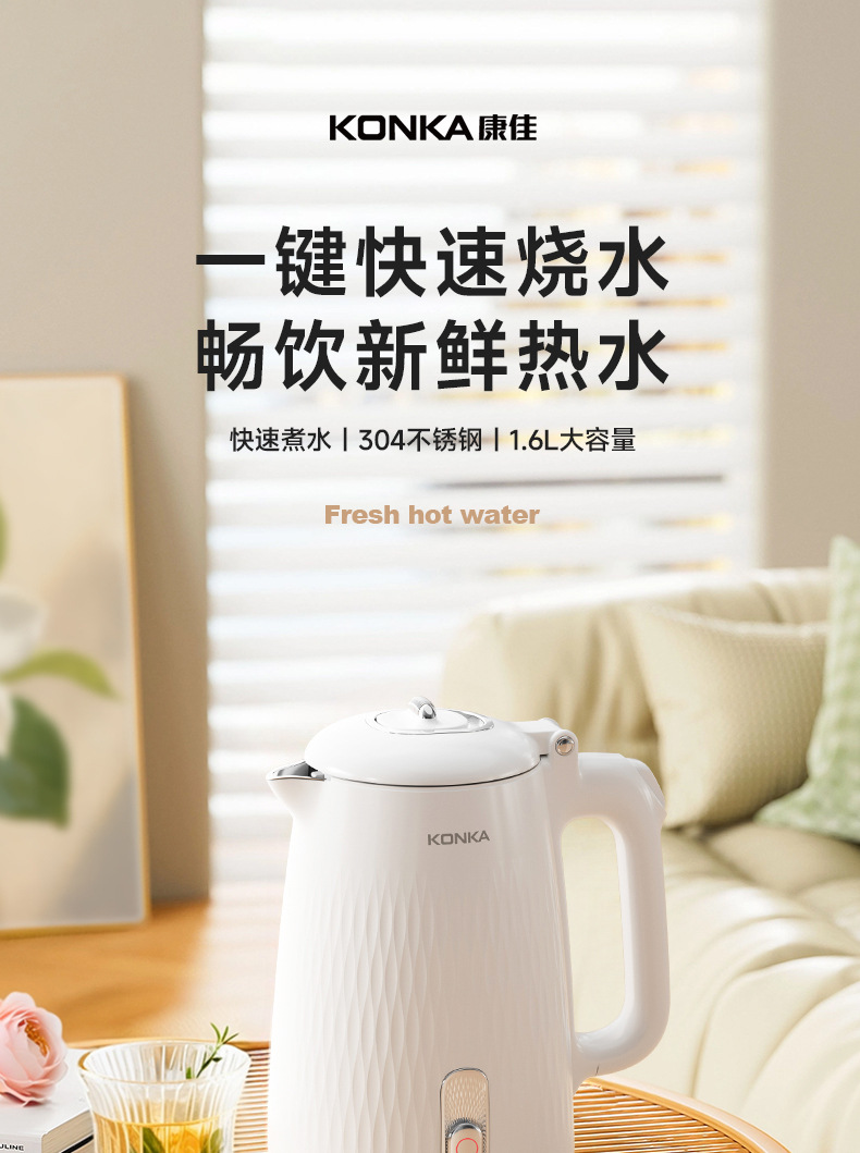 Чайник Konka новый большой ёмкости для дома и отелей с автоматическим отключением, изоляцией, 304 нержавеющая сталь, электрический