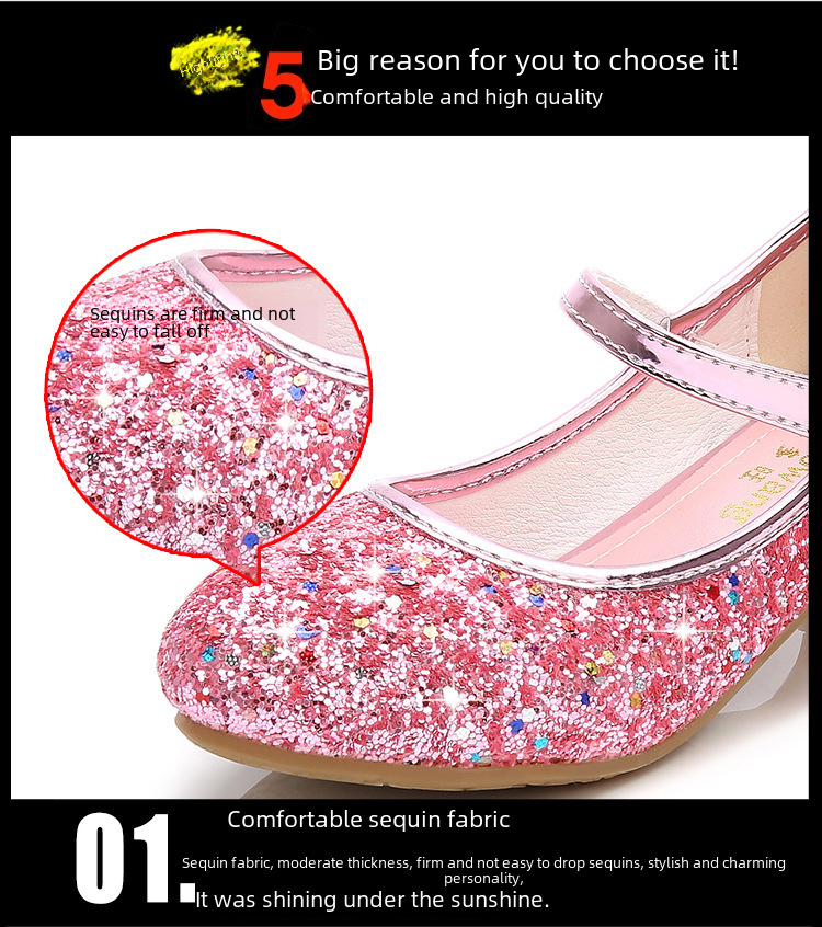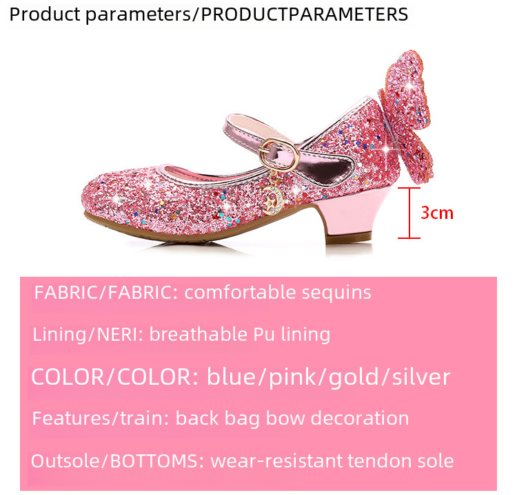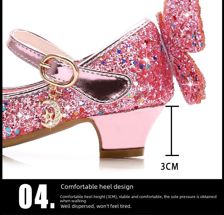 - Princess Style Design:These shoes for girls feature a princess style design, perfect for young fashionistas who want to feel like royalty. The high heel design adds an extra touch of elegance and sophistication.