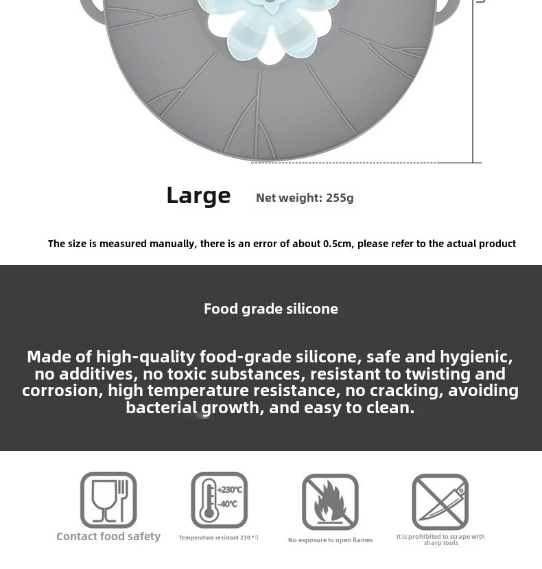 - Silicone Material: Crafted from high-quality silicone, this pot lid ensures durability and longevity, perfect for daily kitchen use.