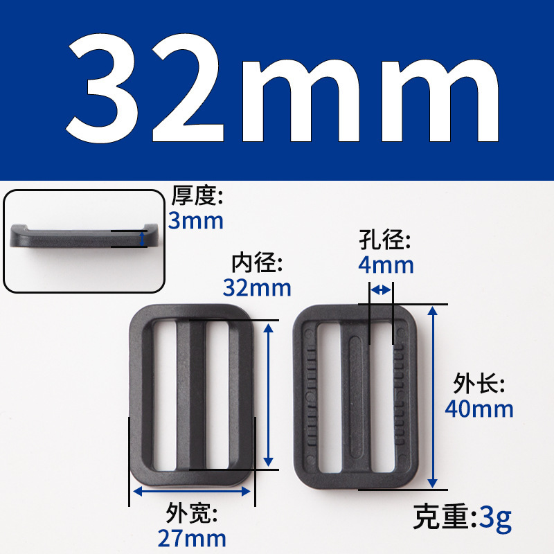 Прямые продажи черная пластиковая пряжка D-образной формы 5 см трехпозиционная пряжка для регулировки стропы подходит для одежды и багажа