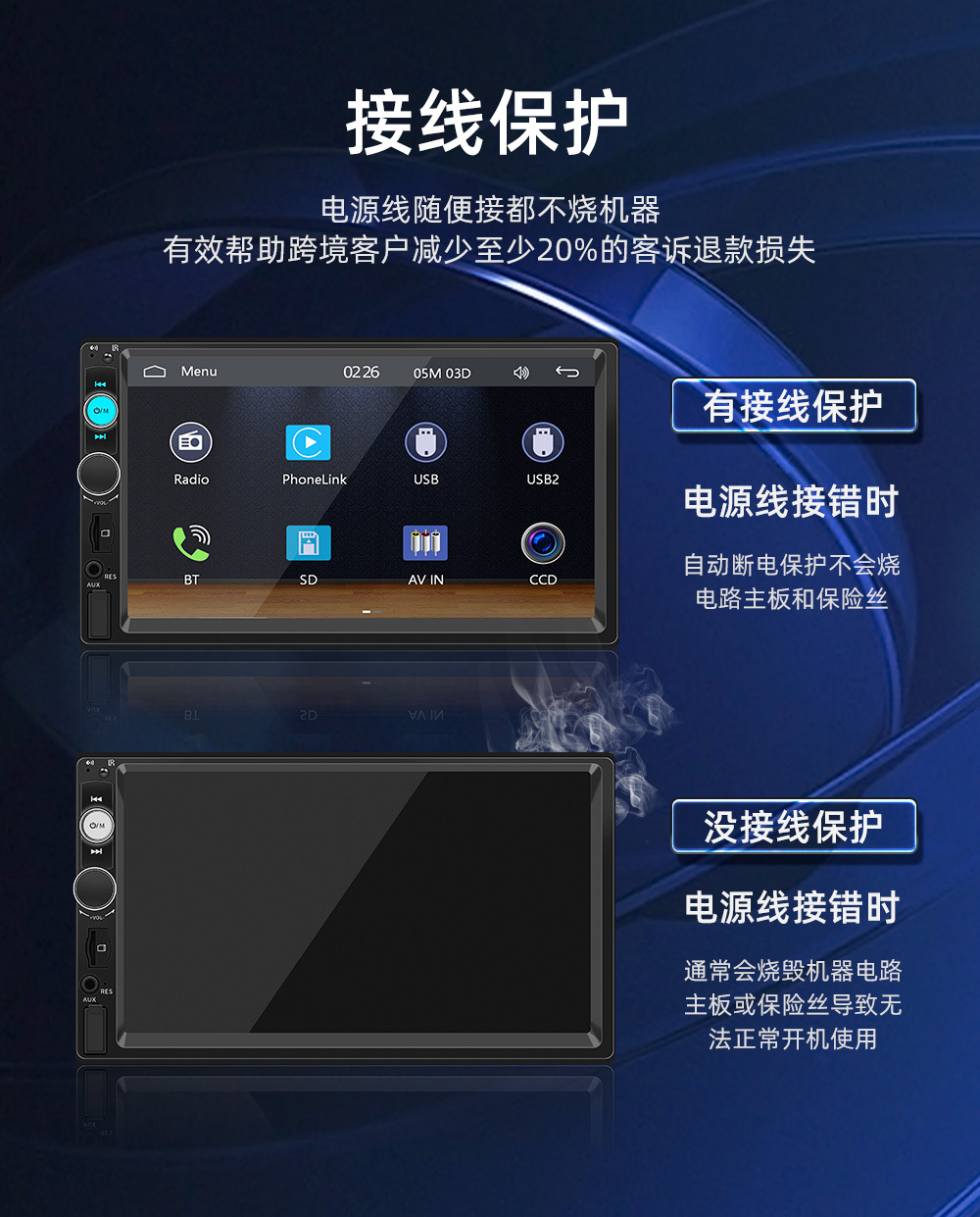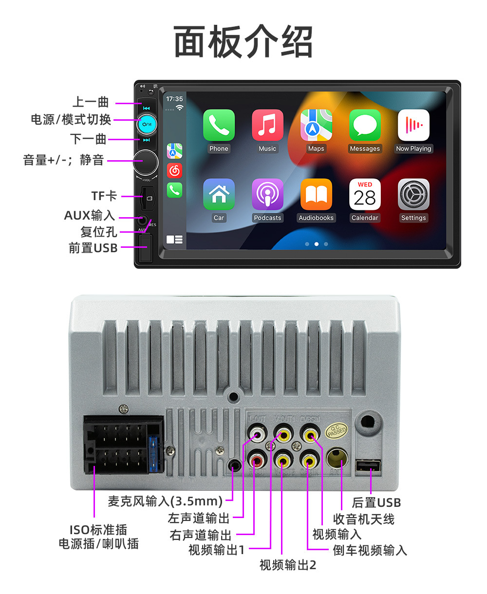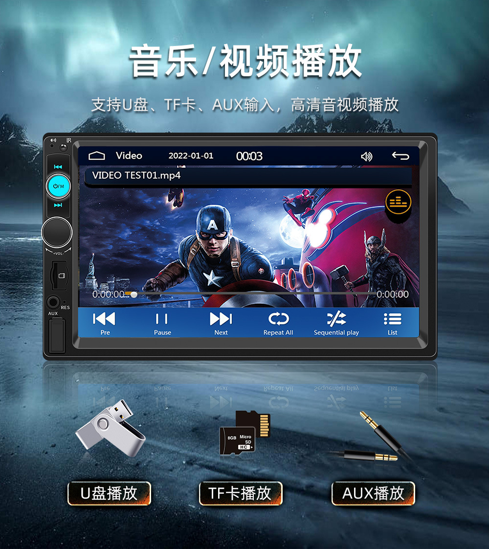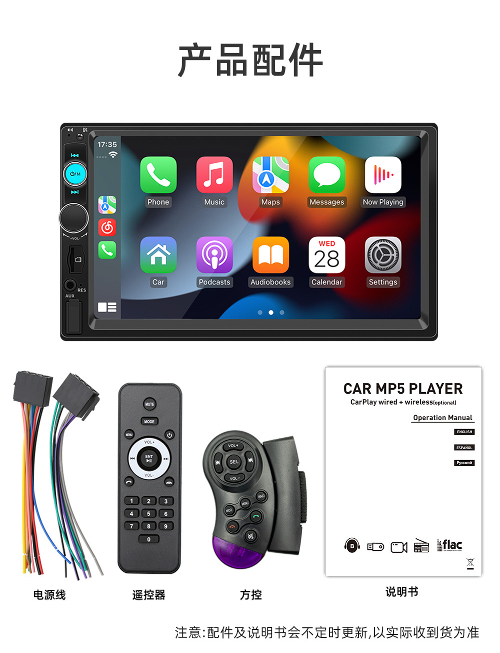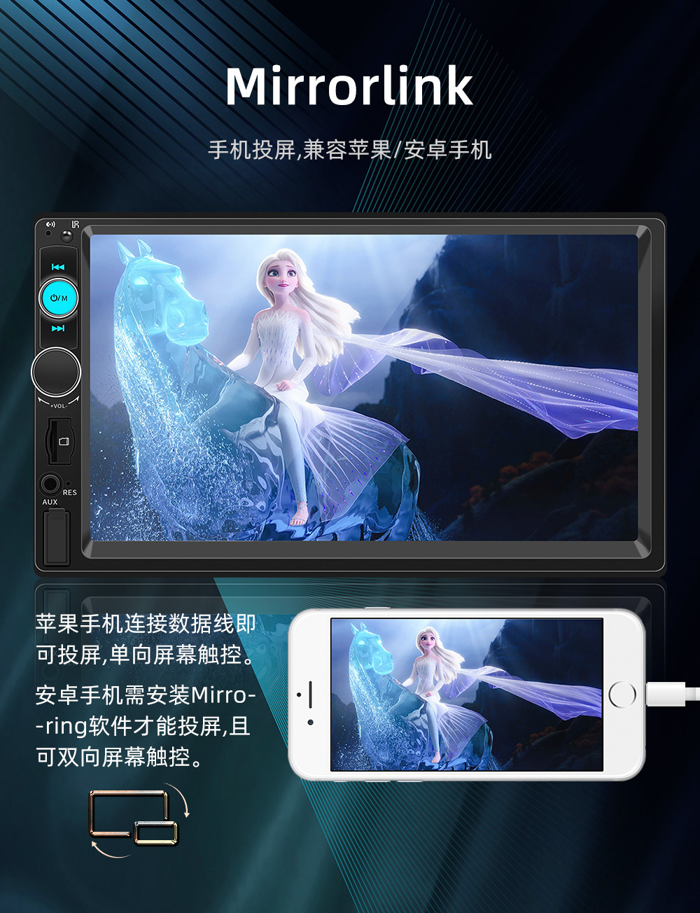 Кросс-бортовой 7-дюймовый HD MP4/MP5 плеер для автомобиля с Apple Carplay, Bluetooth и функцией hands-free