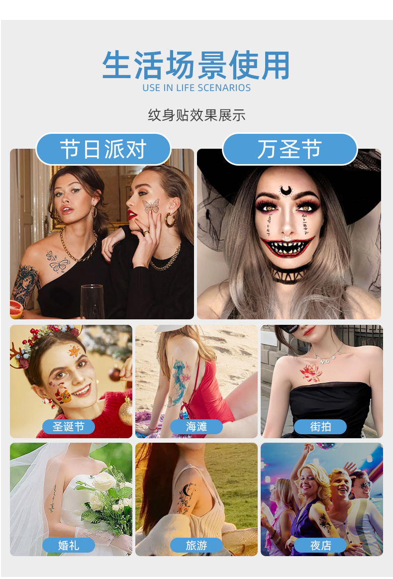 Индивидуальные водонепроницаемые и экологически чистые тату-наклейки с изображениями, травяным соком, светящимися блестящими бумажными наклейками, кружевными наклейками для лица, на заказ