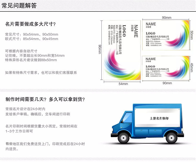 ◆无须出菲林,不过胶和哑胶名片排版后出货,光胶和局部单面UV二至三天出货