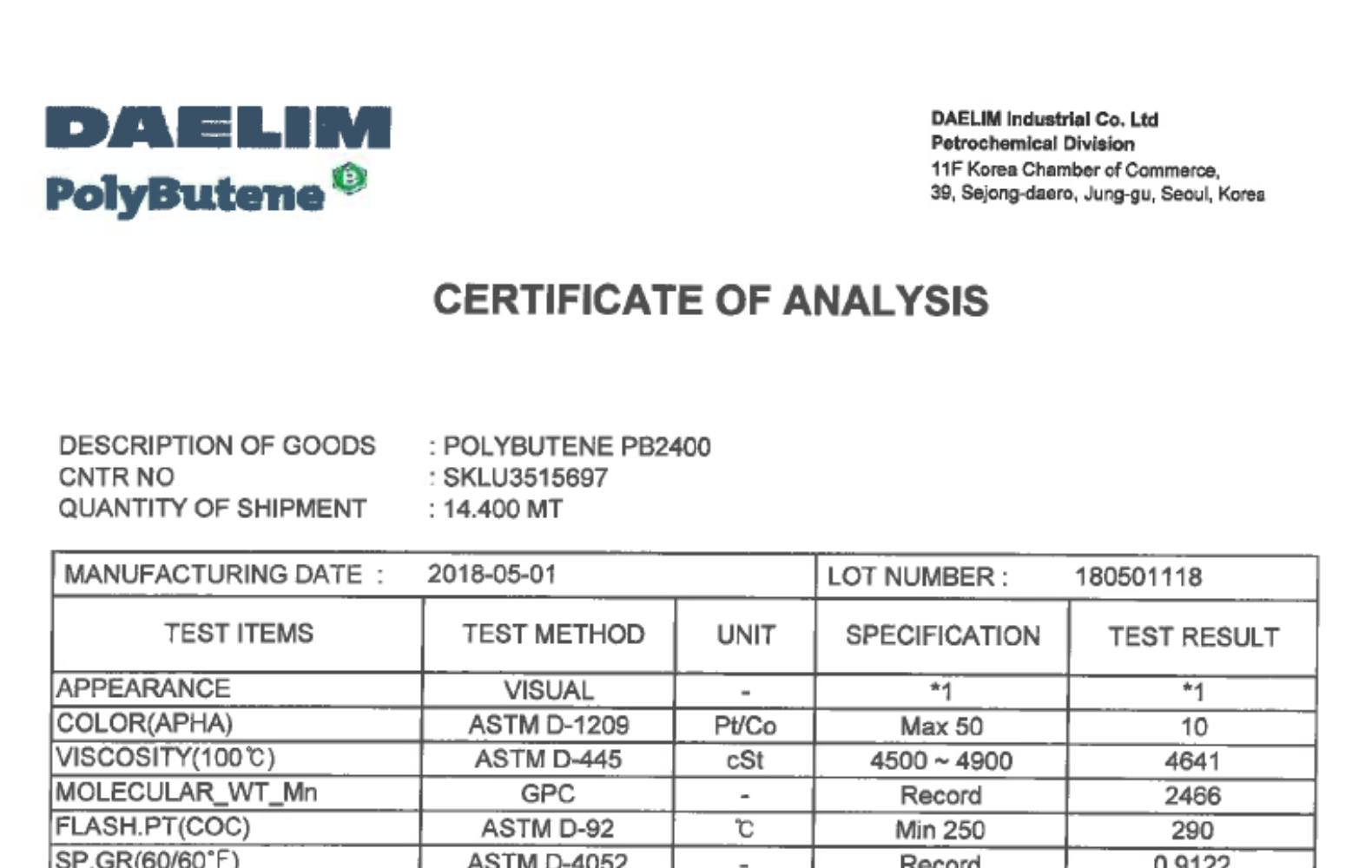 Корея Южная Dalin Полиизобутилен Pb2400 Клей Высоковязкий Сырьевой Материал Смазочный Добавка Полиизобутилен