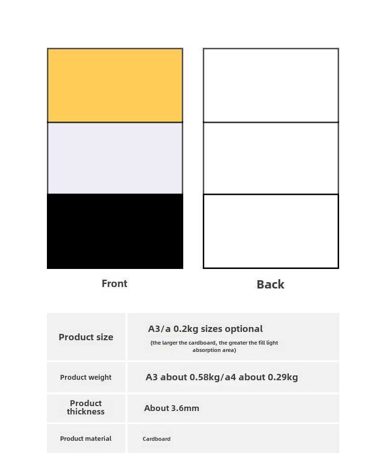 Складная картонная рефлекторная пластина A4 Запасная пластина Утолщенные продукты для фона фотографии Аксессуары для фотосъемки