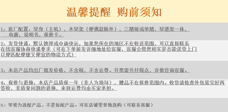 服务国内数千家琴行及教育机构,教学考级琴定制经验丰富,与主流电商平台、跨境服务商建立长期供应链协作,产品畅销全球多个国家与地区。(下单前发详细地址给客服,客服会帮您核实是否能送货上门,以便匹配便捷又便宜的物流方式)