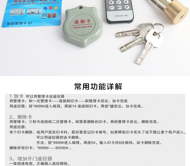 本款锁具为ID刷卡一体锁(分单头和双头可选)