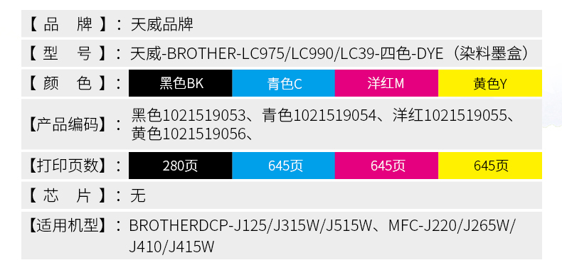 Совместимый картридж Tianwei для Brother LC975, подходит для MFC-J220 J265W J410 LC990