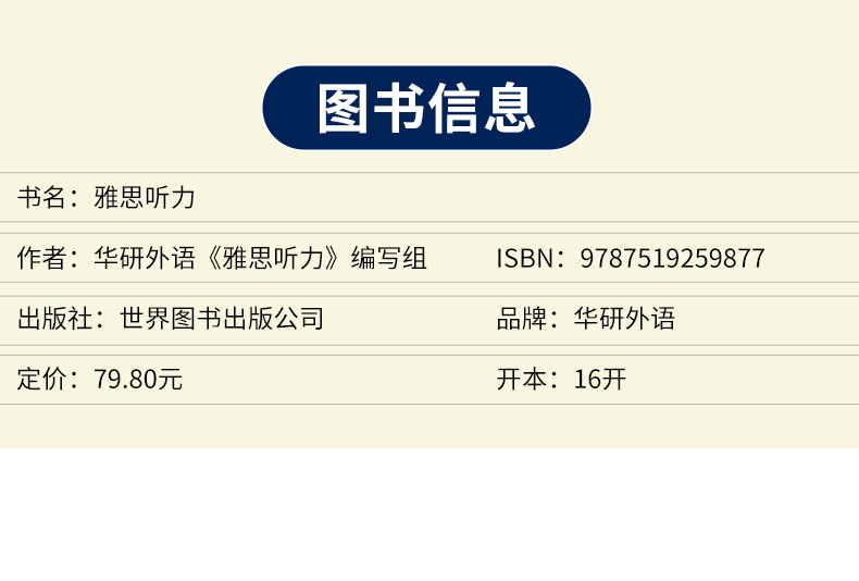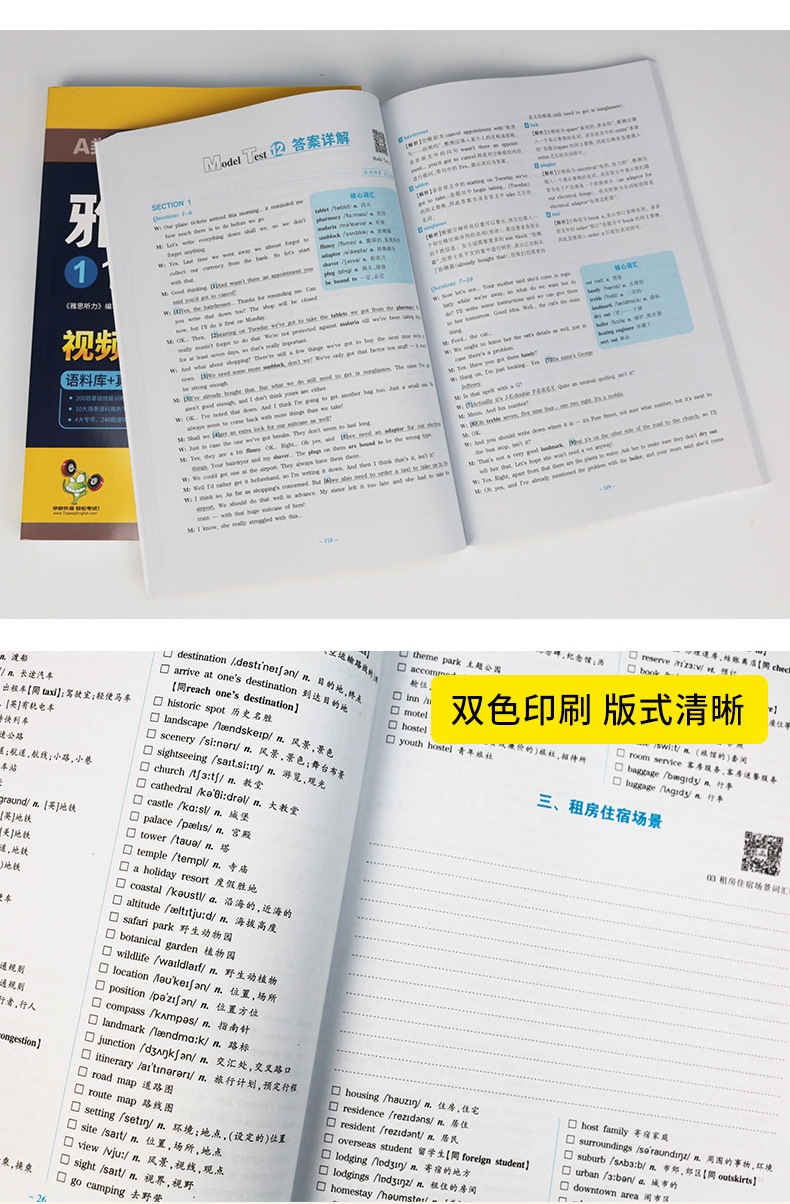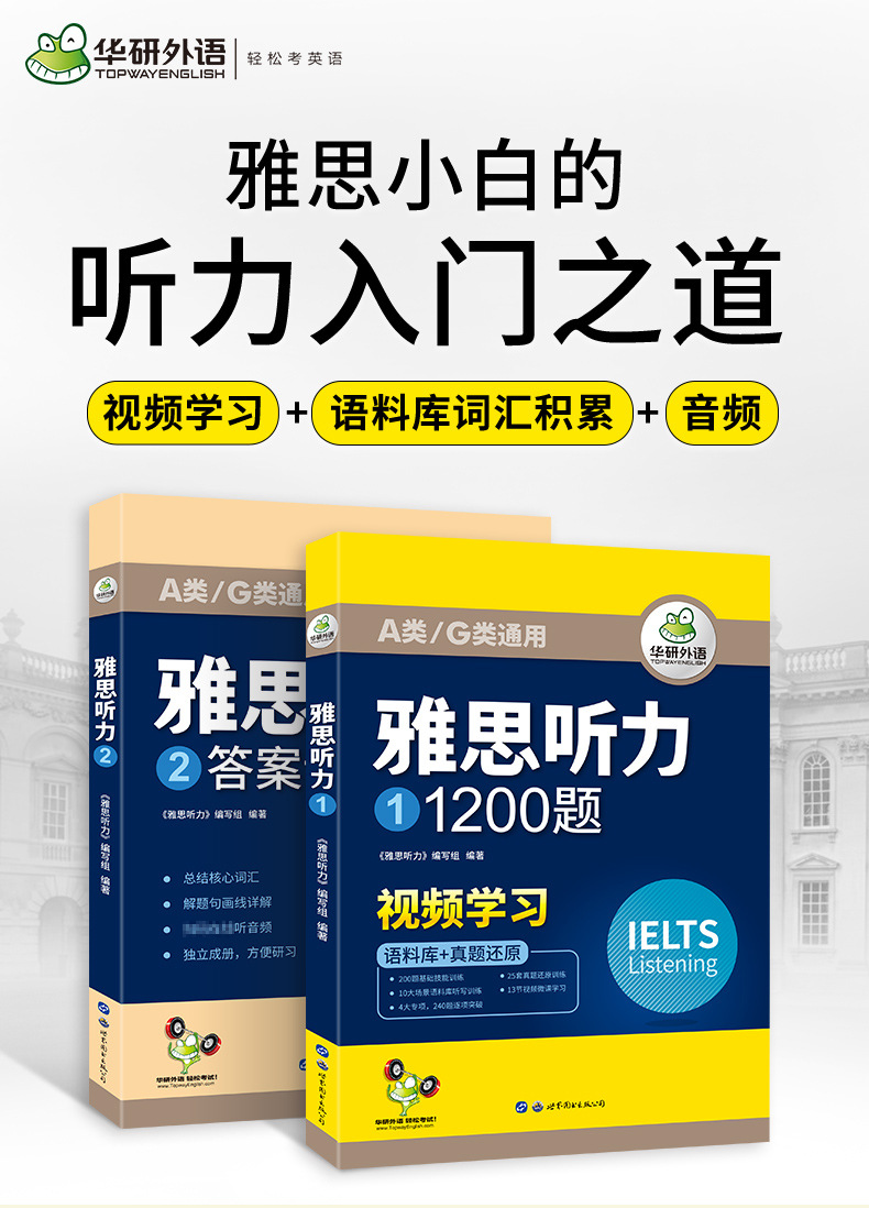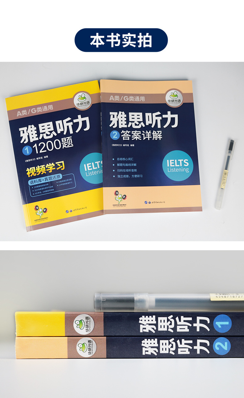 1. 两册装,上册为听力1200题,提供雅思听力考试的理论指导,从语音和词汇入门,积累雅思听力场景词汇,分析命题规律和各题型的解题技巧。有的放矢,有助于考生快速备考。下册为答案详解,答案独立成册,避免来回翻页。