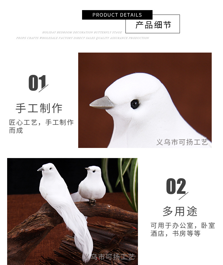 Новогодние товары Симулированная перьевая птица Декорация для сада Фальшивая птица Белый голубь Декоративные украшения Для дома Оптовая продажа фальшивых птиц