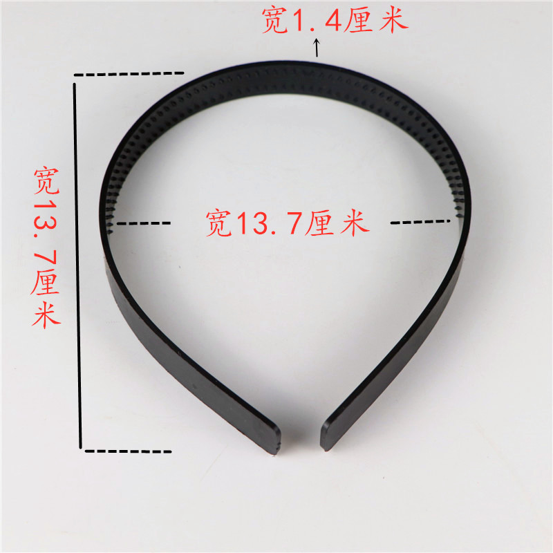 1.5厘米宽度双排齿发箍,有黑色和白色两个颜色,重10.3克,长度35.5厘米左右,这款有普通和加厚两个款式,常用规格有5 10 12 15 20 25 38 48毫米,款式多,量大可以定做加工。