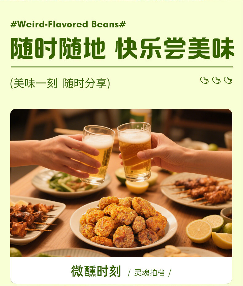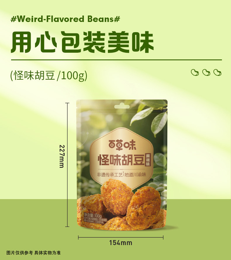 Байцаовэй странные жареные бобы 100г, крабовый вкус/острый вкус, закуски