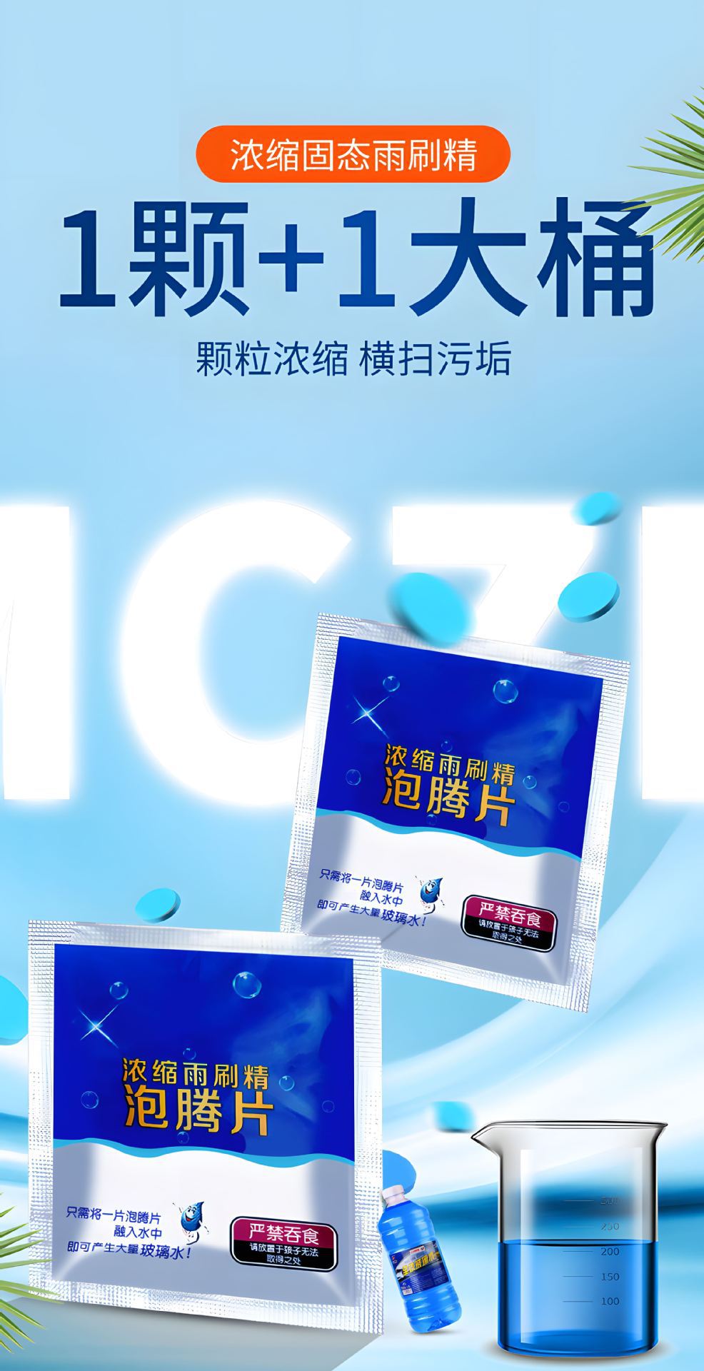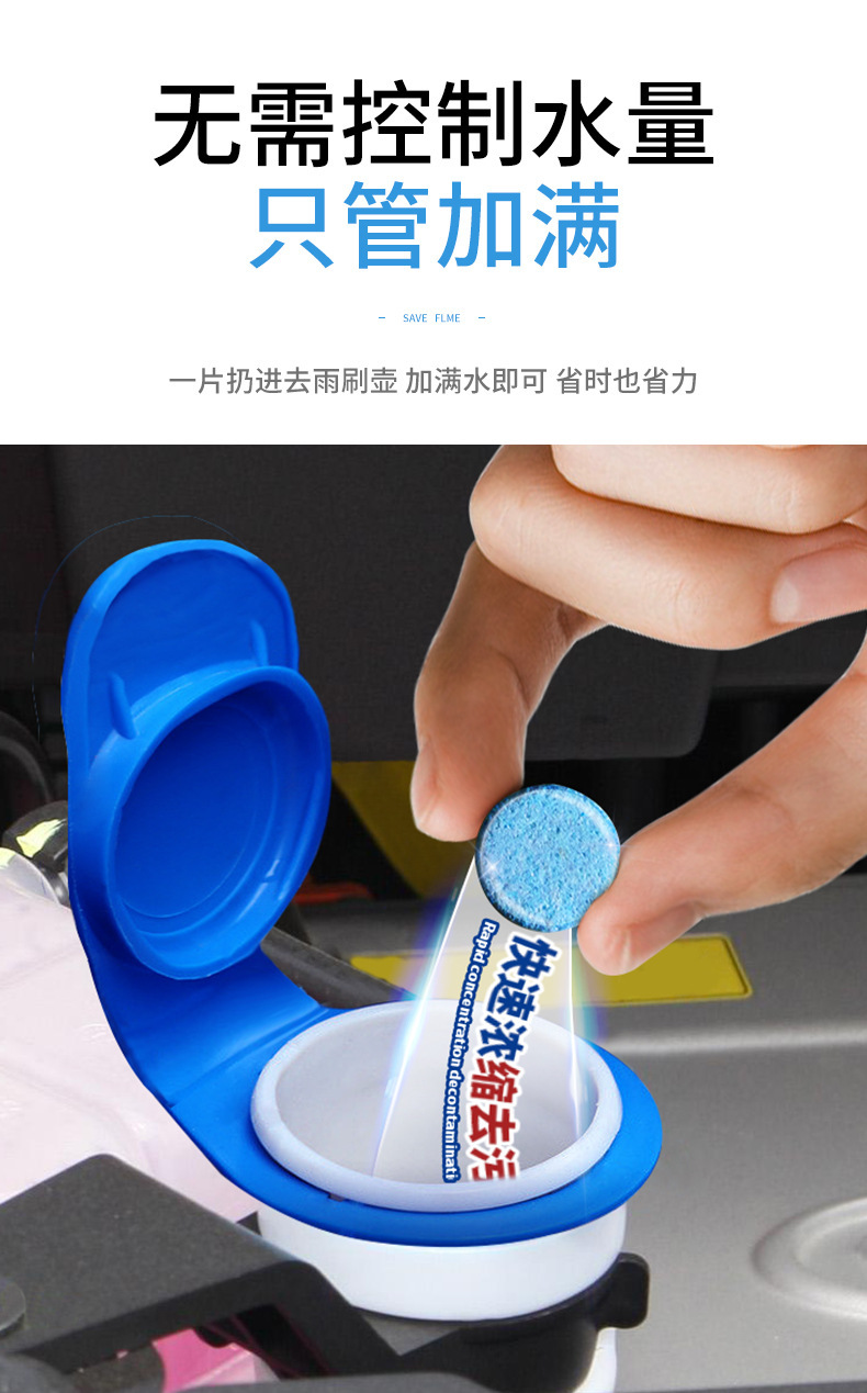 一片泡腾片可用3-4L水稀释,一般建议先将其扔进雨刮壶,在加水(水加满即可)