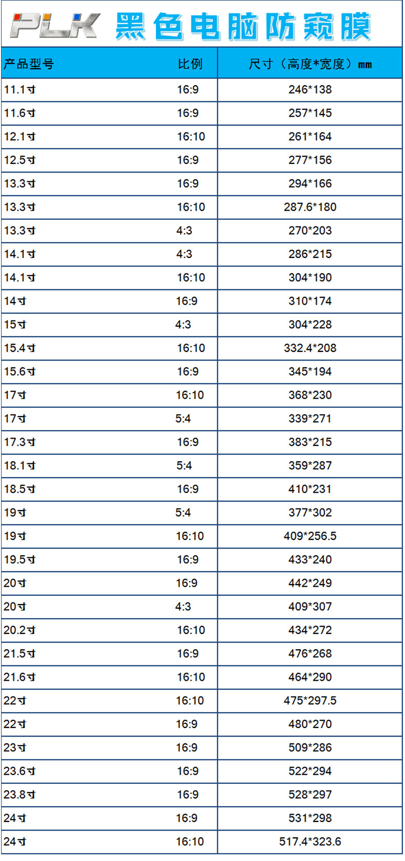 📦 | Black snap-on privacy film | 19.5 inches -433*240mm-16:9 | ¥50.0 / ≈ 603 ₽ | 9998 | 6007961219385 | |