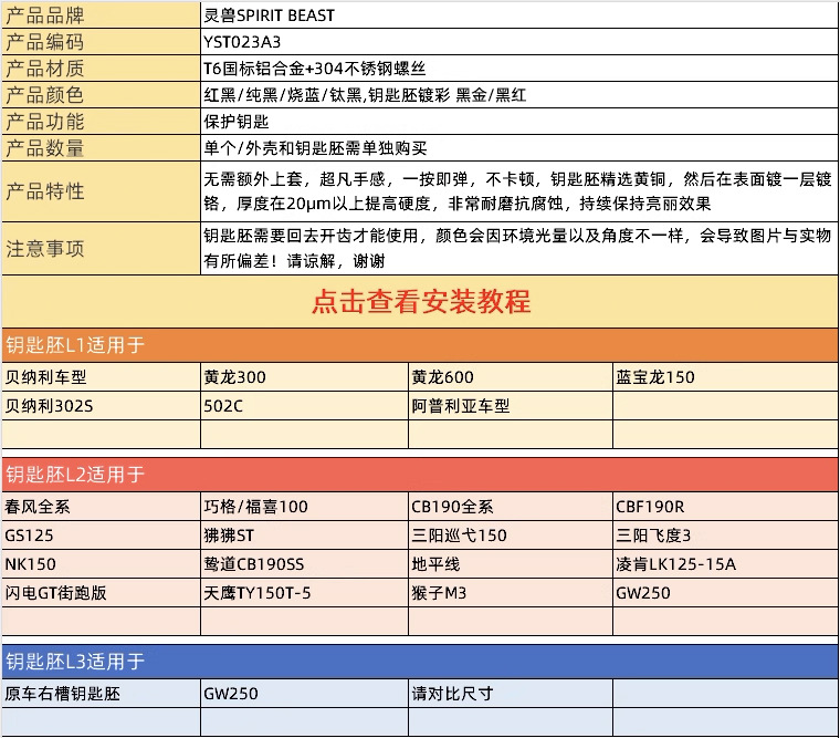 ![]() | Benelli key blank l1 - suitable for spirit beast models | ¥5.0 / ≈ 60 ₽ | 1230 | 6196201946454 | |