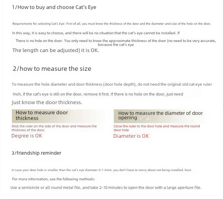 ![]() | Super clear-with anti-peep cover-aperture 26-32MM/door thickness 75-100MM red bronze wire drawing (boxed) | ¥6.5 / ≈ 79 ₽ | 99972 | 5575391374796 | |