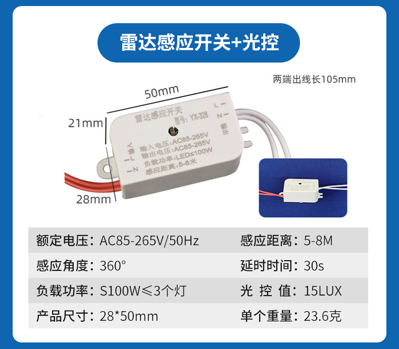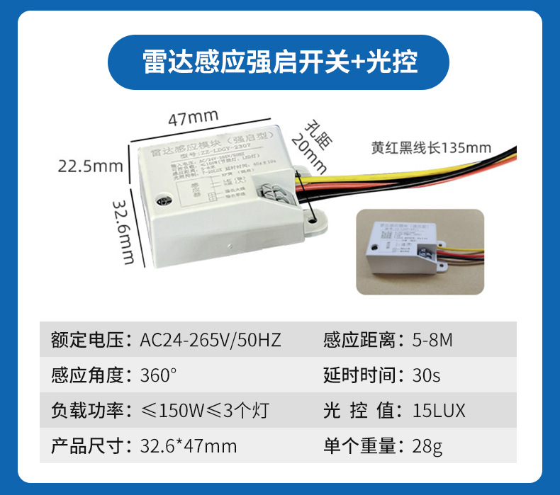![]() | 5.8g radar sensor switch adjustable | ¥16.0 / ≈ 193 ₽ | 982 | 5739044311227 | |