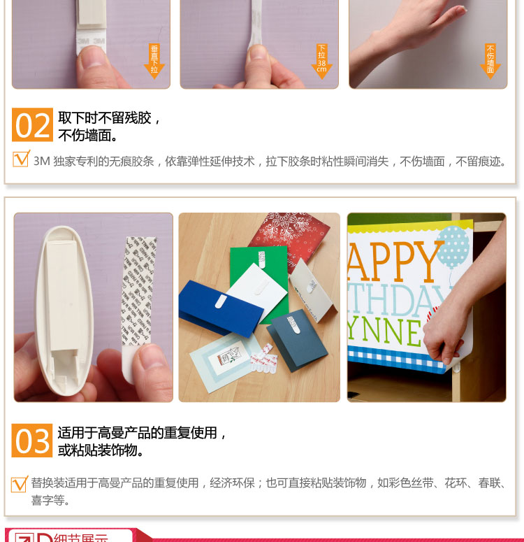 3M高曼无痕胶条替换装也就是双面胶除用于挂钩魔力扣的替换胶条外,也可以单独使用!经济方便实用!