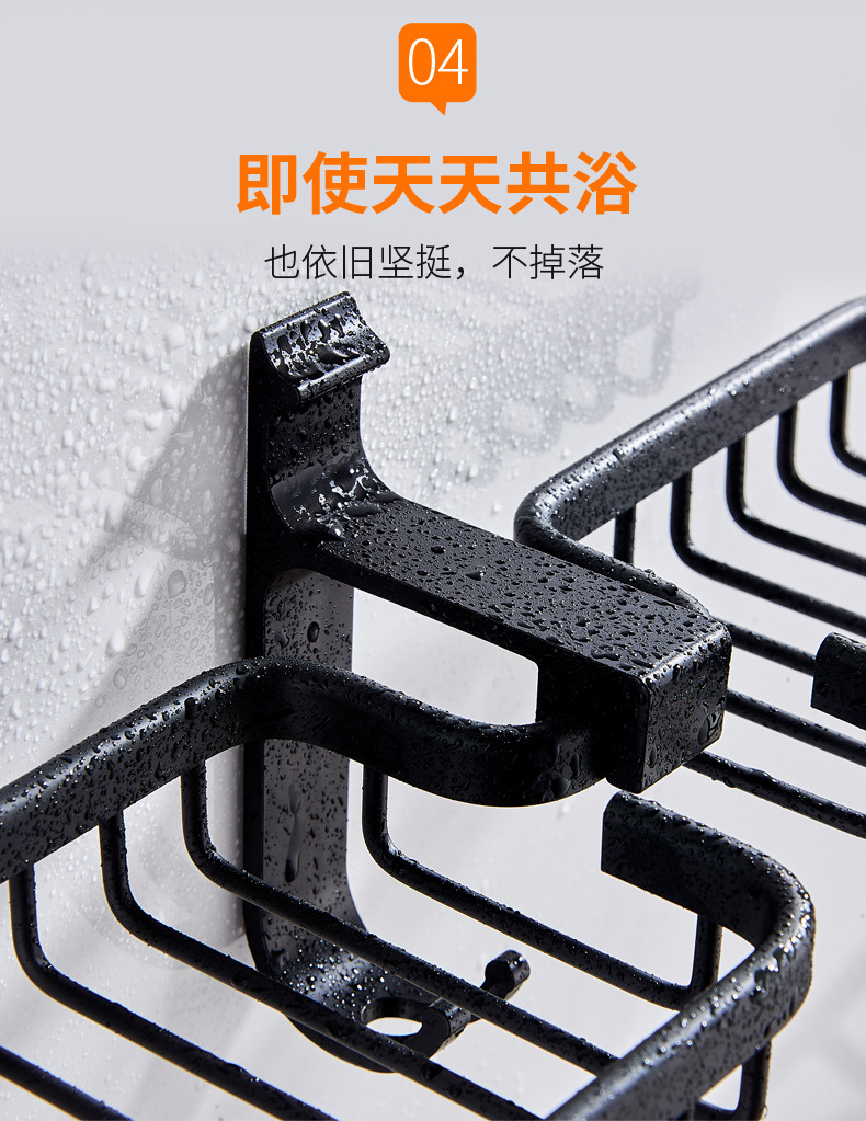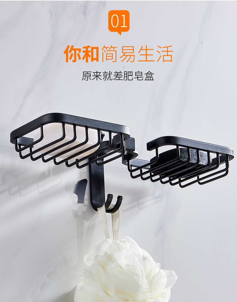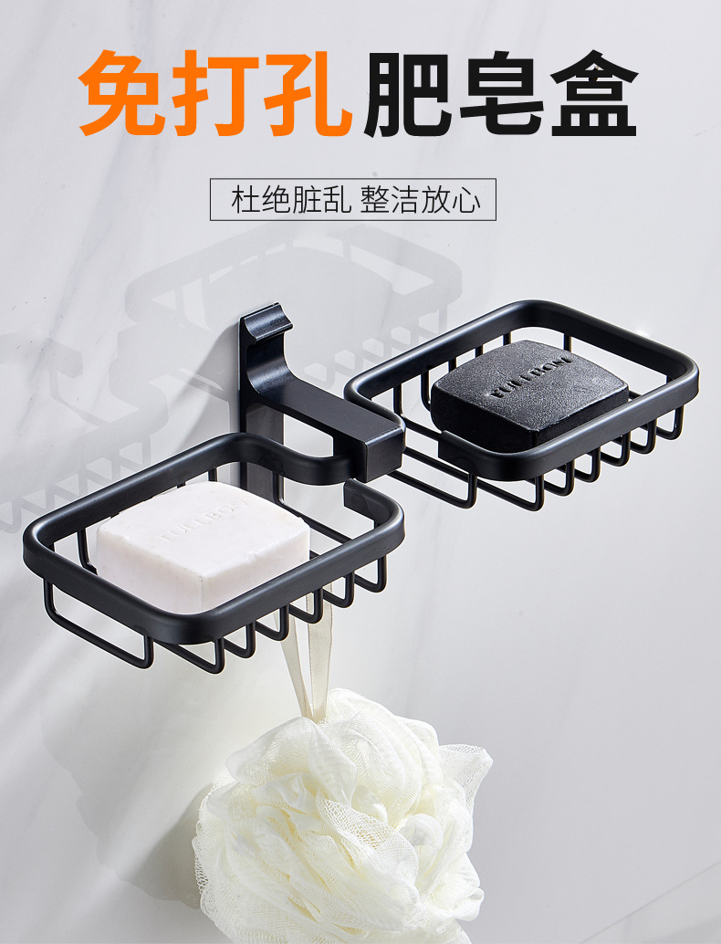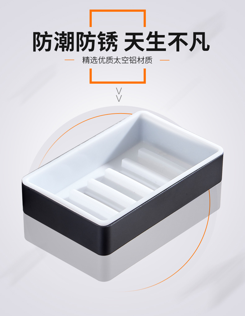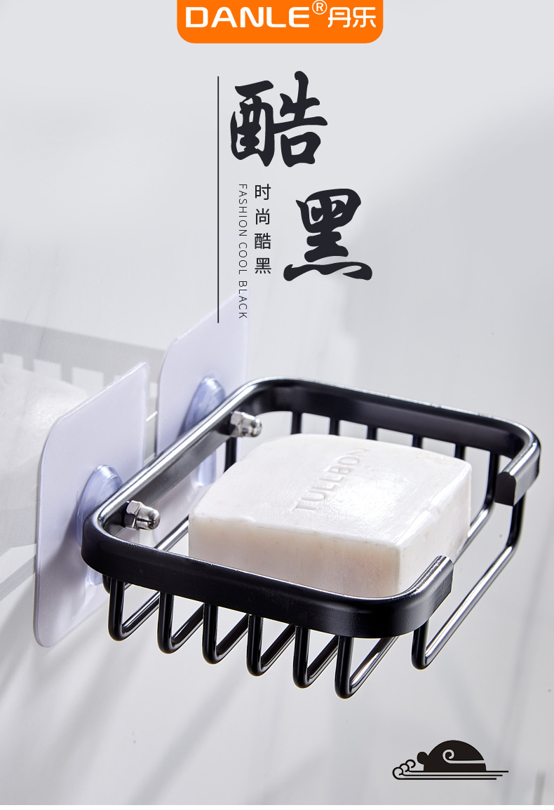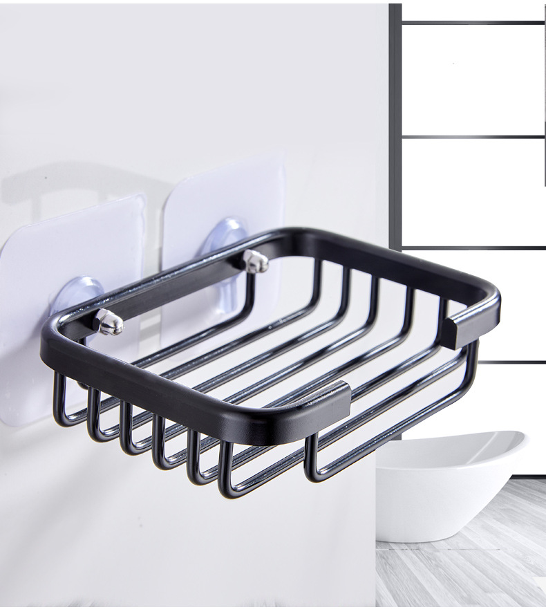 Безсверловой мыльница из алюминия черная настенная для ванной