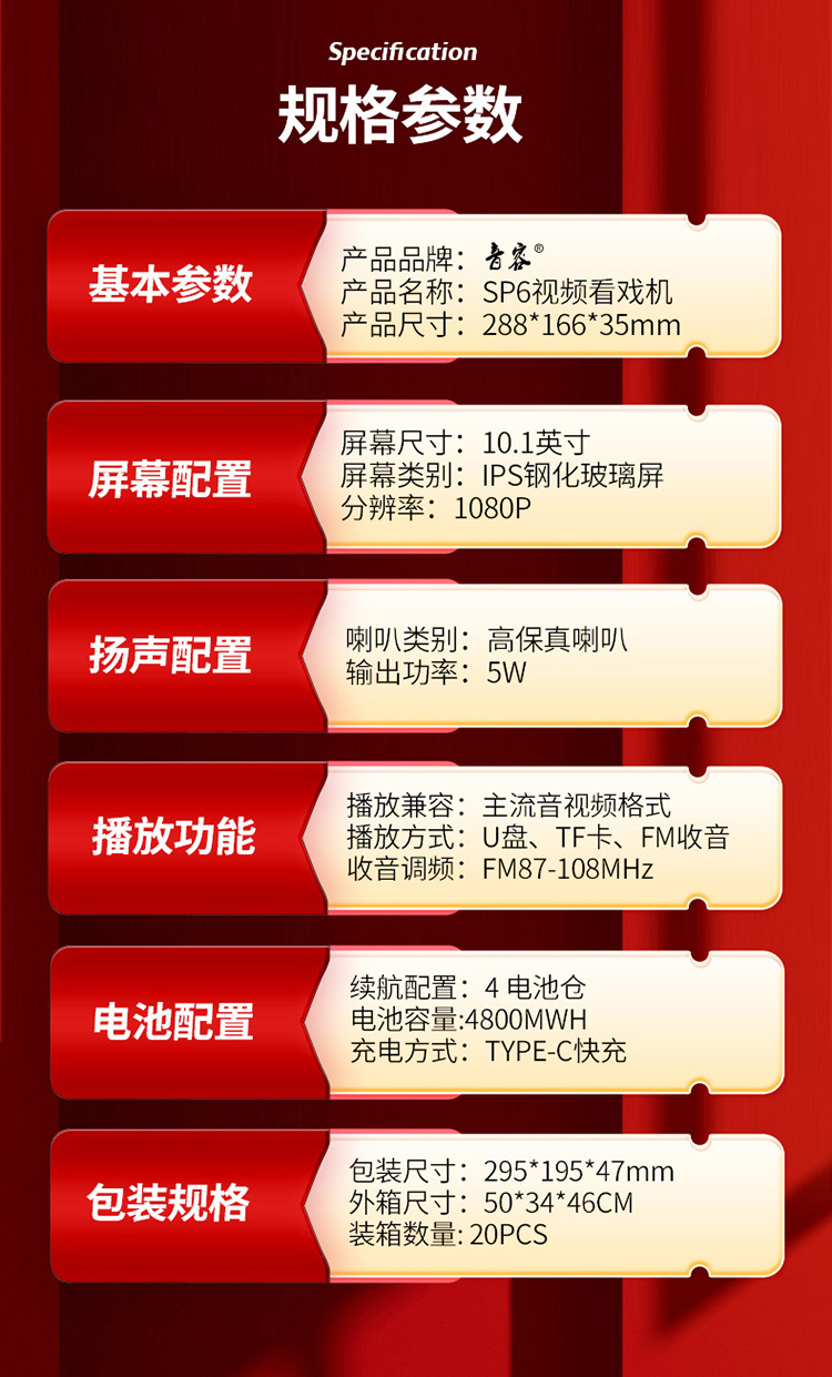 📦 | Sp6-1 red [hd display dual battery life] fast charge 9.8inch | ¥107.0 / ≈ 1 293 ₽ | 481 | 5832461092250 |