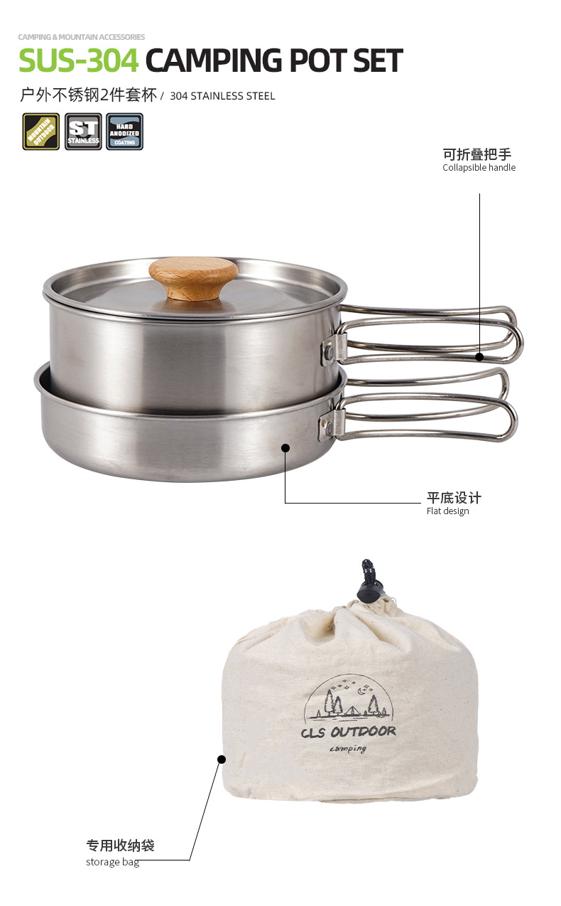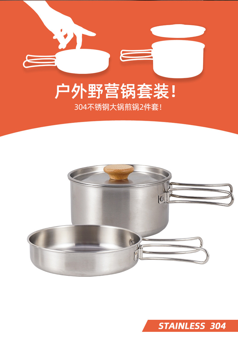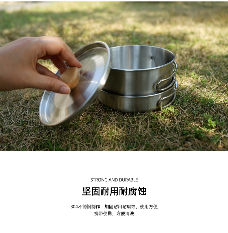 Набор посуды для кемпинга с складной ручкой из нержавеющей стали 304 для пикника и походов