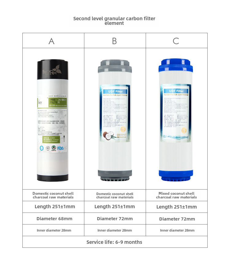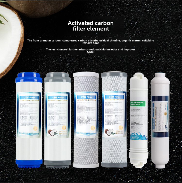 10-дюймовый элемент фильтра для водоочистителя, ПП хлопковый, расплавленный фильтр, кокосовый гранулированный активированный уголь, сжатый уголь, фильтр из синтерованного угля
