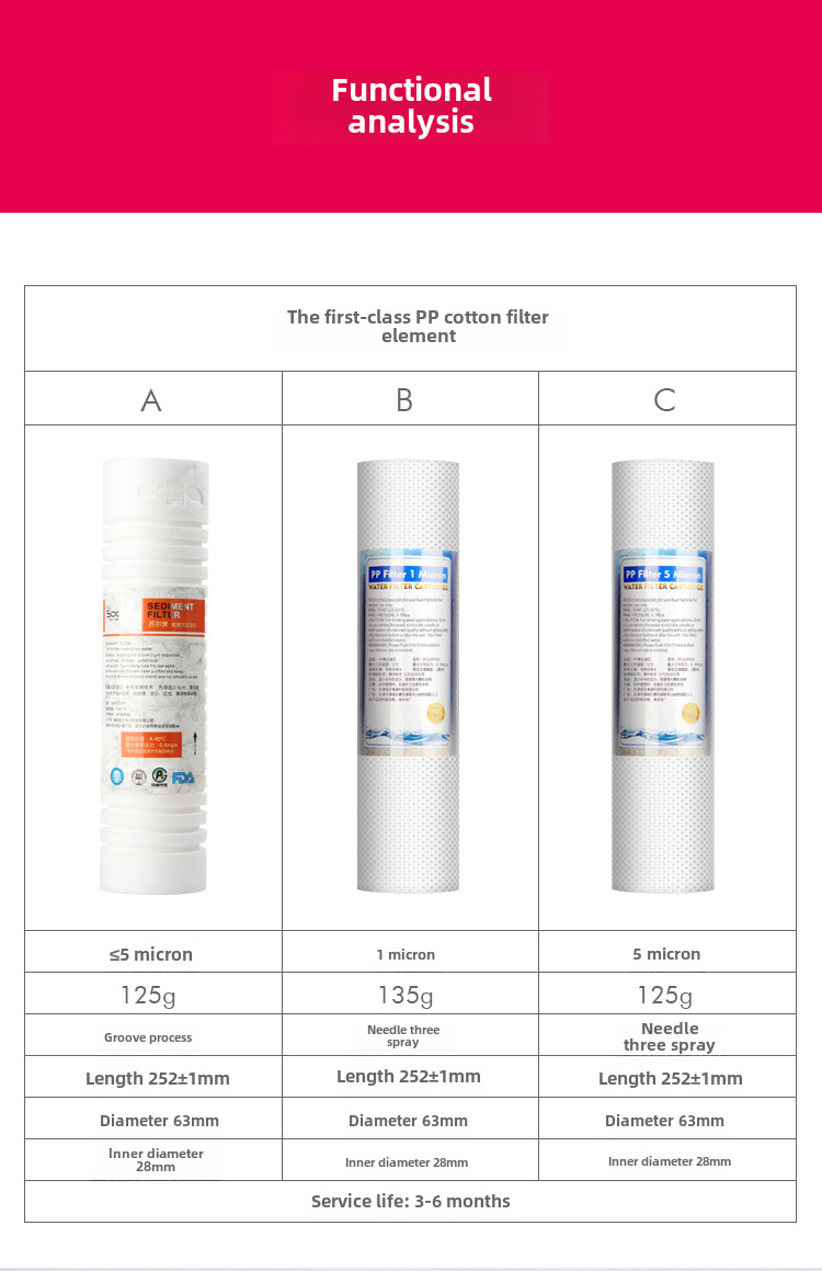 - High-Quality Filter Material:This water purifier filter is made from PP cotton, a material known for its high-quality and long-lasting performance. It ensures your water is clean and free from harmful contaminants.