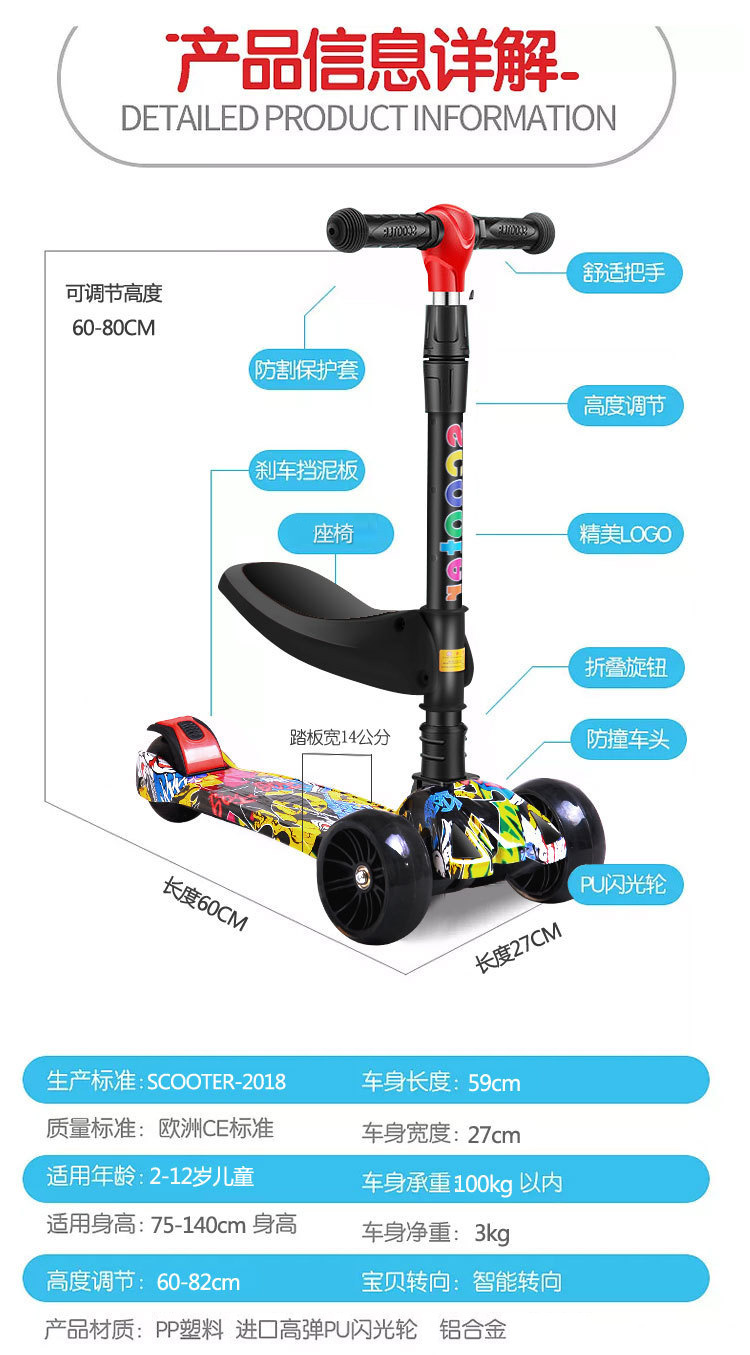 Новый детский самокат три в одном для мальчиков и девочек 2-12 лет, можно сидеть, складной