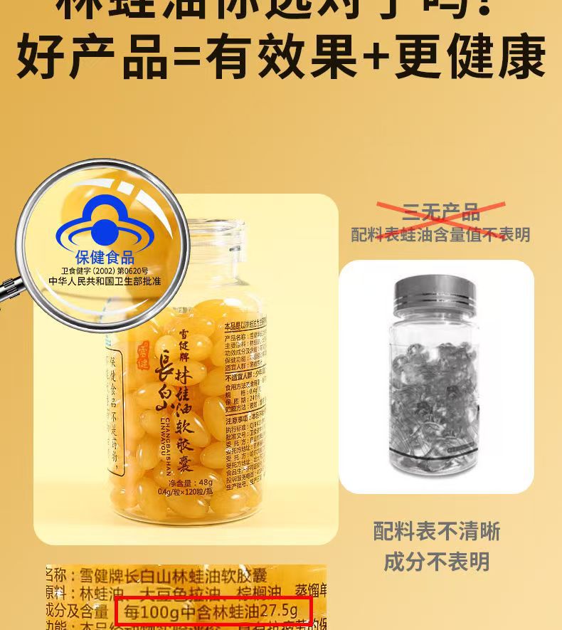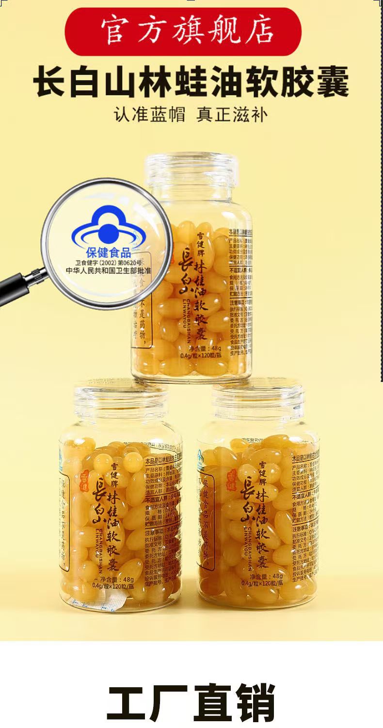 Капсулы масла лягушки с синими крышками из Чанбай, оптовая продажа