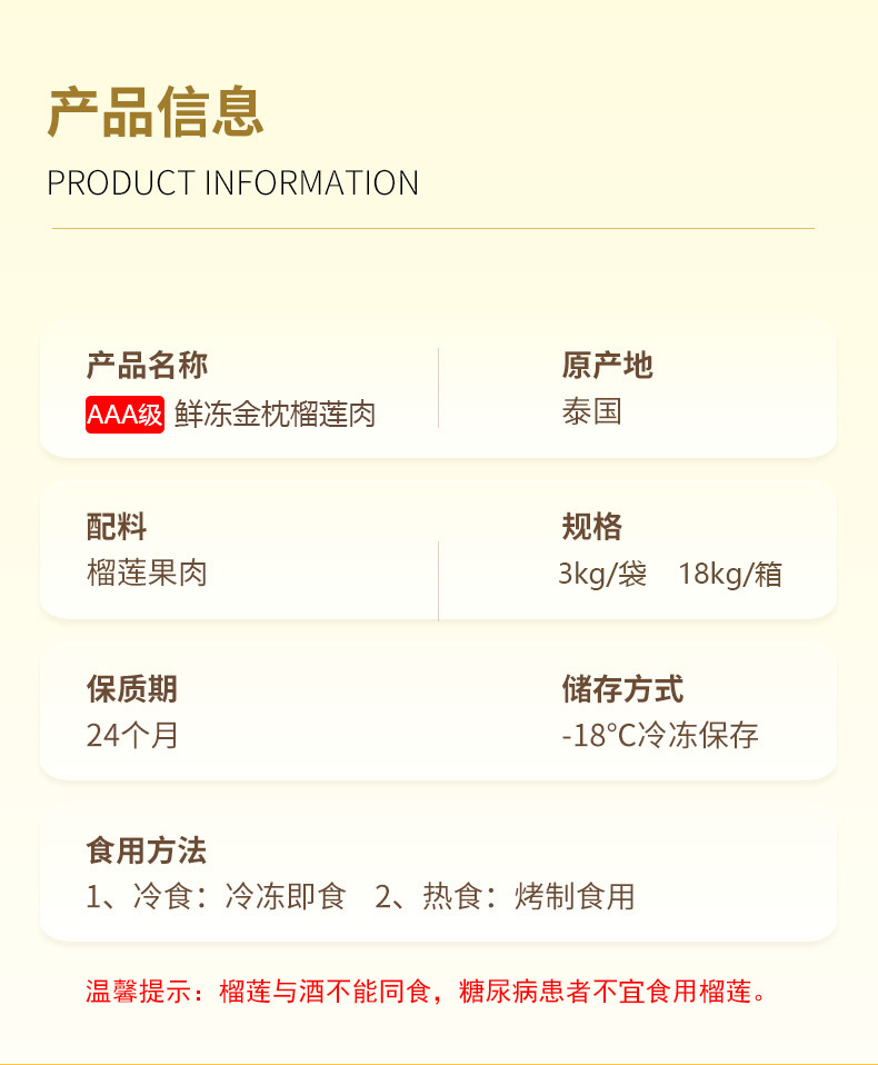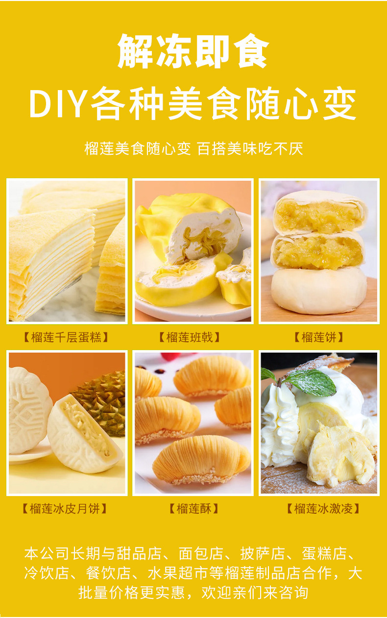 3A сорт, тайский золотой подушечный дуриан, замороженная мякоть без косточек, свежий фрукт, оптовая продажа, жареный дуриан, ингредиенты для выпечки, 3кг/пакет