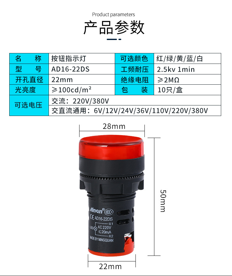 Прямые поставки LED индикаторной лампы AD16-22DS Красный Зеленый Желтый Синий Белый 22мм