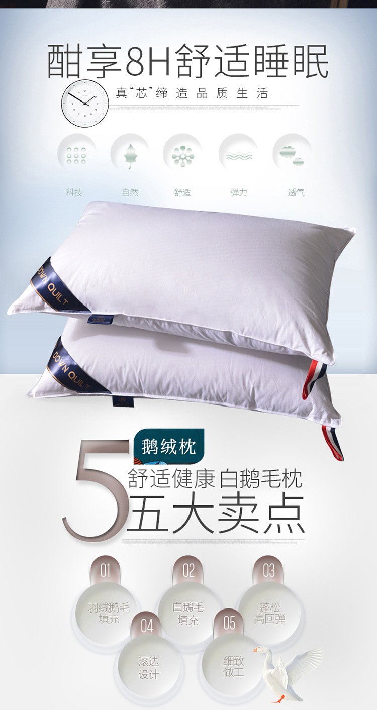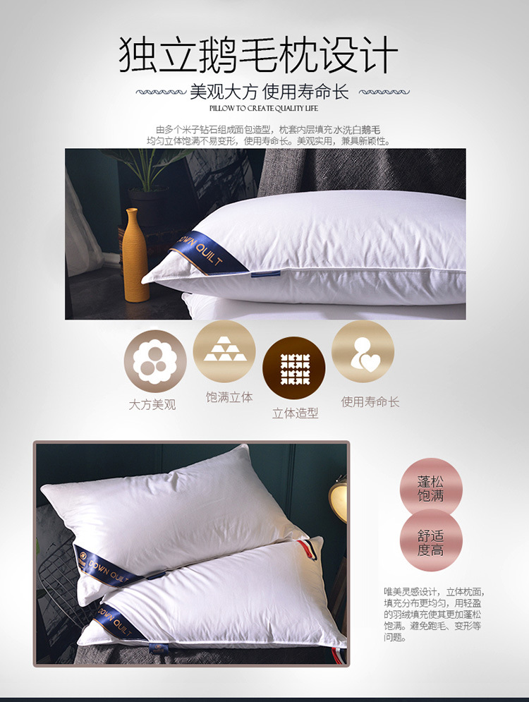 Хлопковая подушка с 95% белого гусиного пуха, специальная хлопковая подушка для пятизвездочного отеля, оптовая продажа