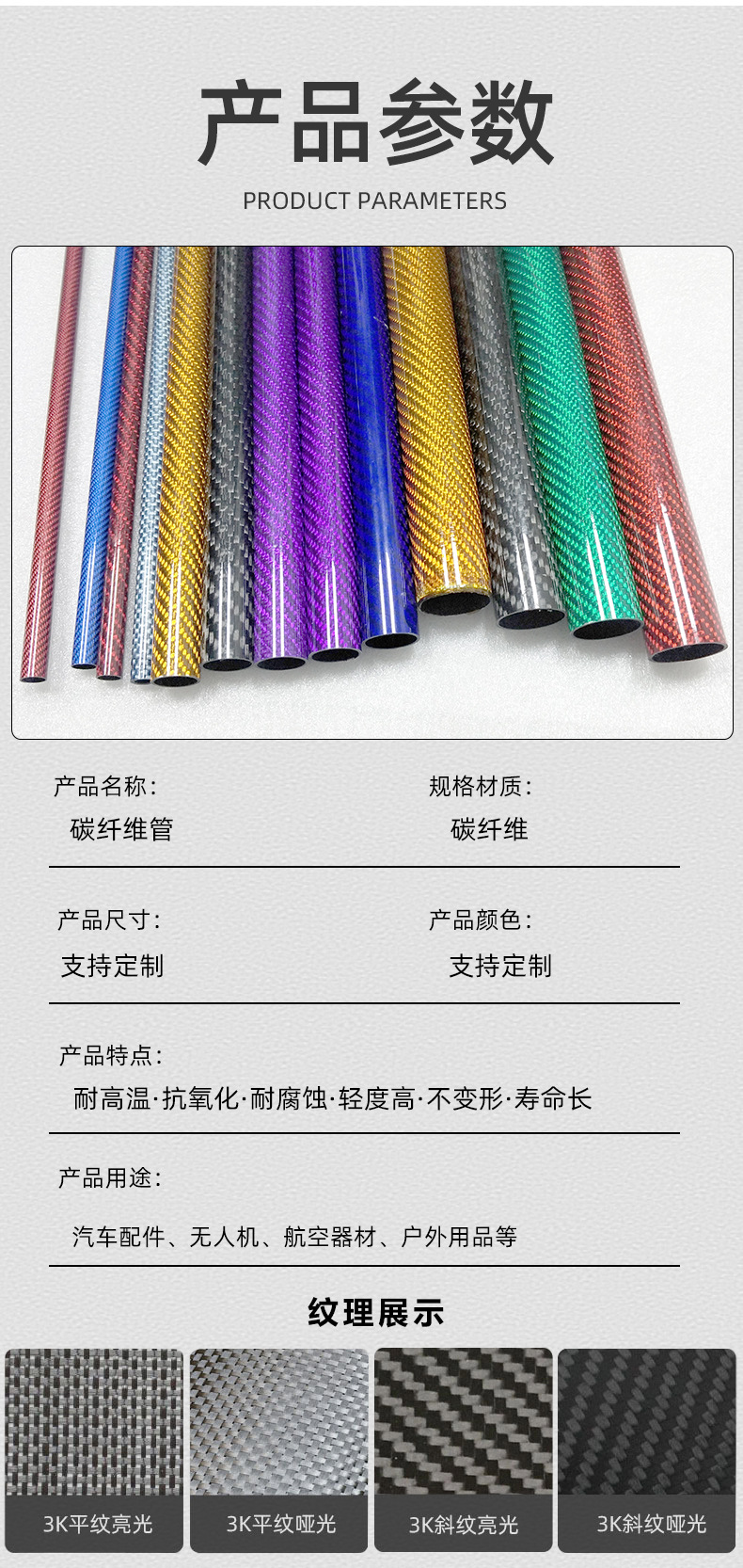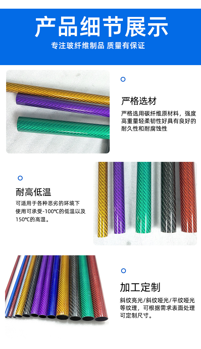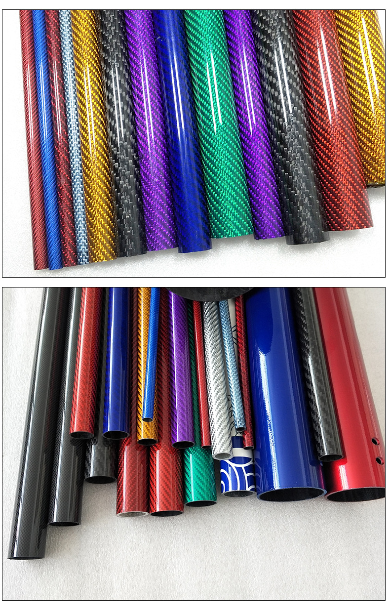 Цветные трубки из углеродного волокна 3K, твил, простое плетение, глянцевые и матовые, полностью углеродные, прозрачные красные, желтые, зеленые, синие, фиолетовые
