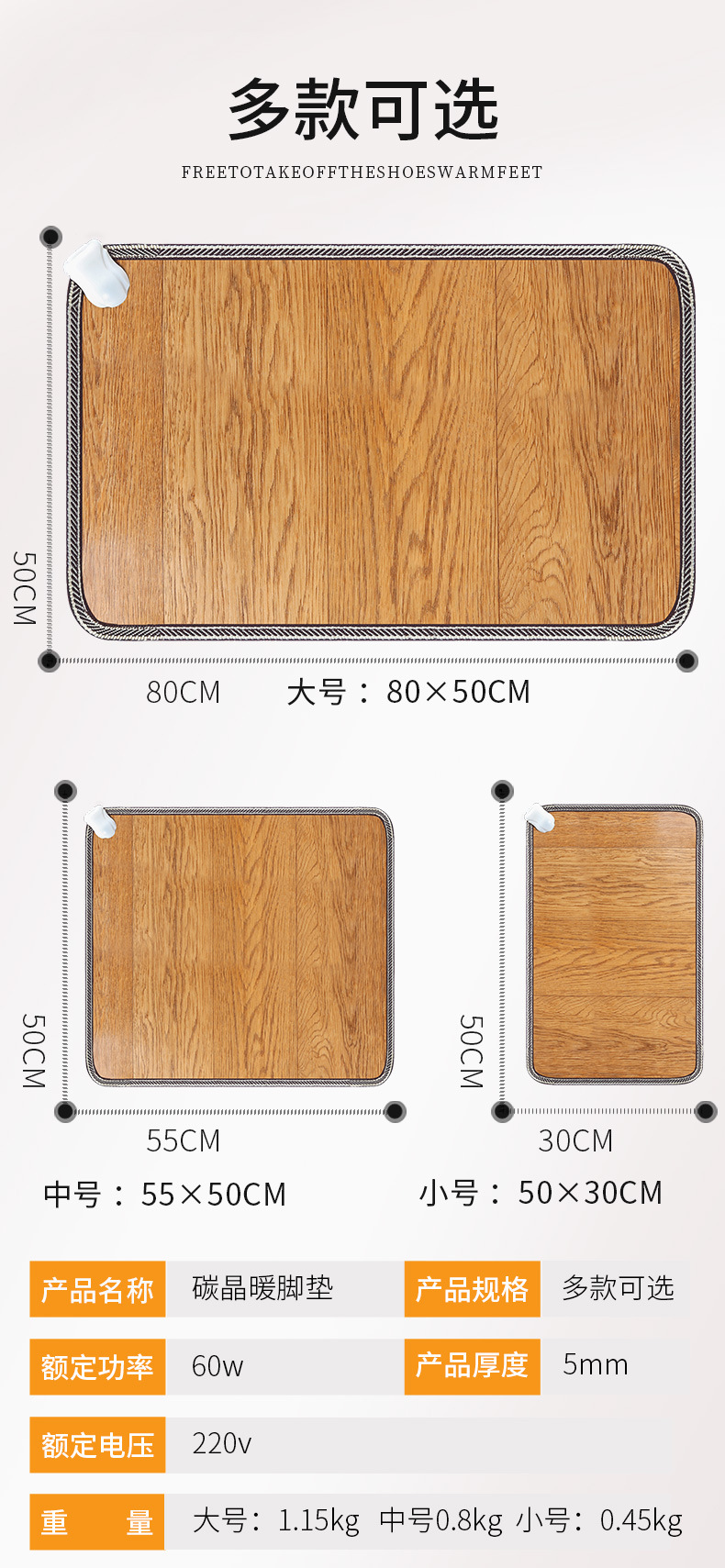 ![]() | 80*50 warm foot mat | Digital thermostat switch | ¥68.0 / ≈ 820 ₽ | 64901 | 4758317888069 | |
