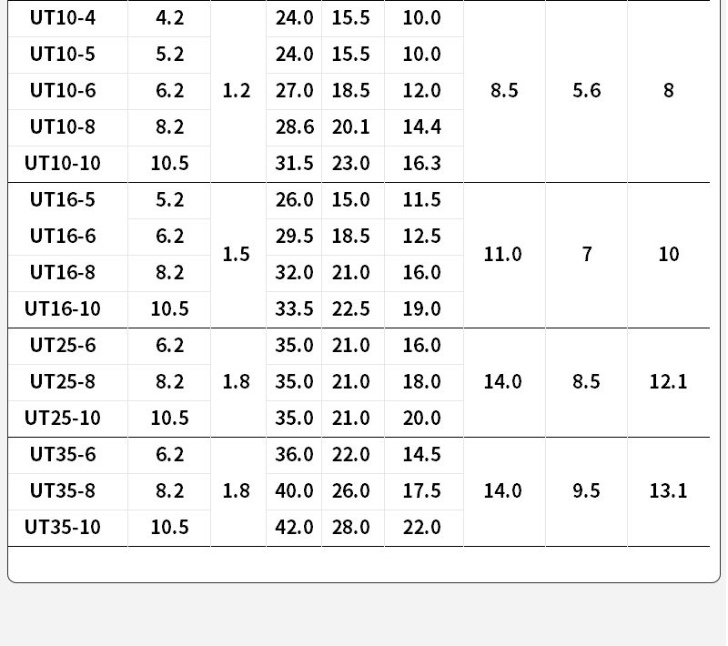 Характеристики UT0.5-3/1-3/1.5-4/2.5-4/4-5