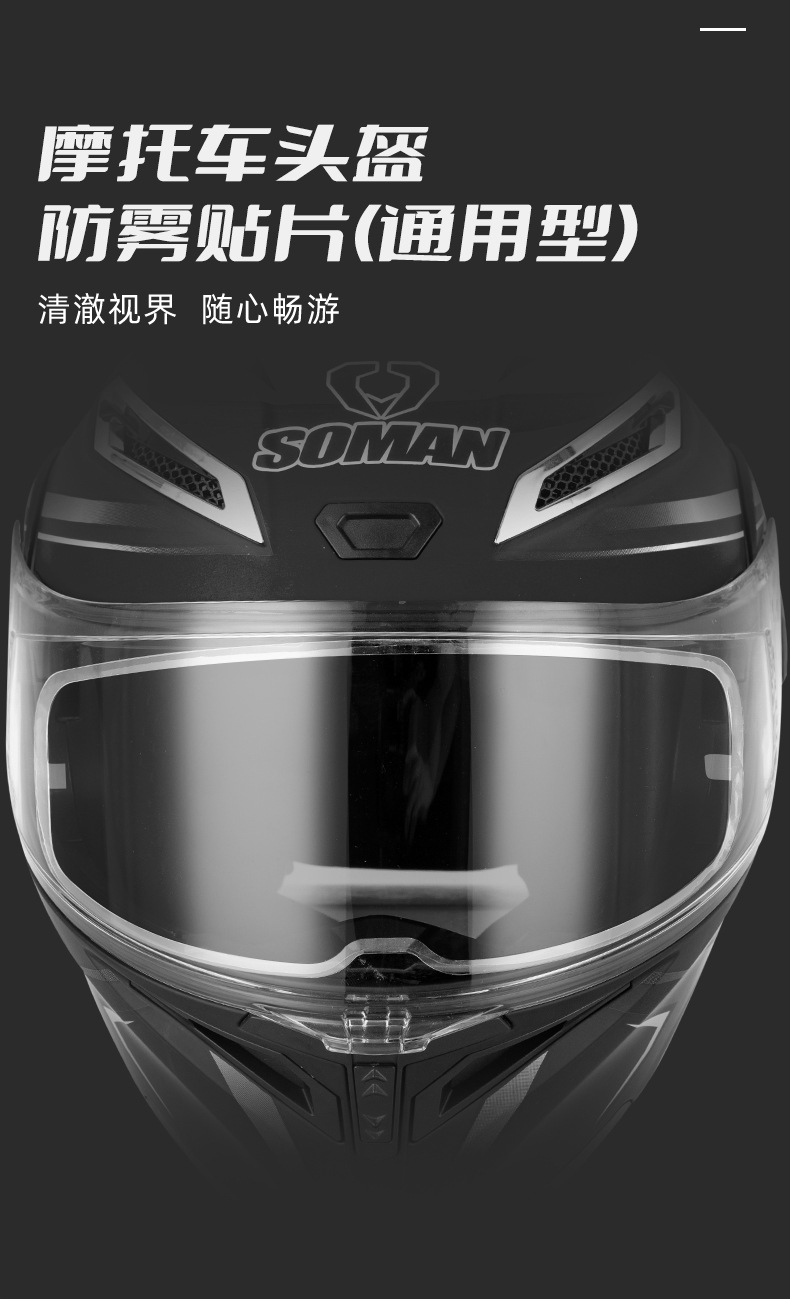 Антизапотевающая наклейка SOMAN для мотоциклетного шлема антизапотевающий лист полная пленка антизапотевания для шлема электрического автомобиля патч AV04