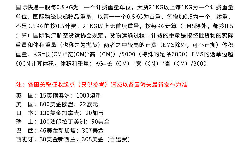 国际快递、空运价格变动频繁,宝贝价格仅供参考,具体价格请咨询业务