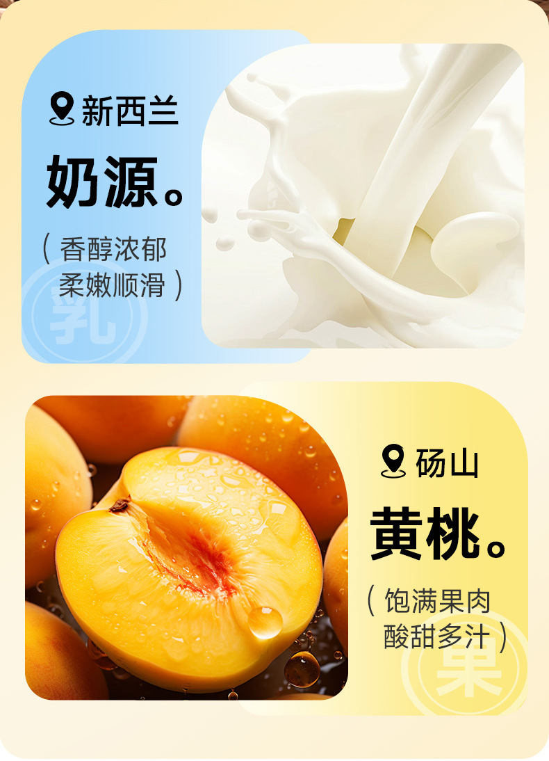 Сырьё и ингредиенты Water, white sugar, diced peach pulp, coconut, milk powder