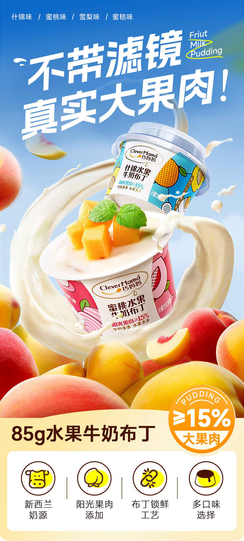 Qiao Mama 85г Пульповый молочный пудинг персиковый ассорти сувенирные закуски фруктовое желе оптом