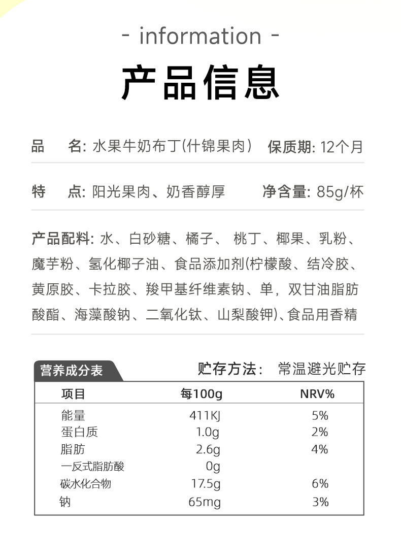 ![]() | Peach pulp | 85g/Cup | 8шт: ¥4.21, 31шт: ¥4.01, 47шт: ¥3.82 | 717 | 4645801292405 | |