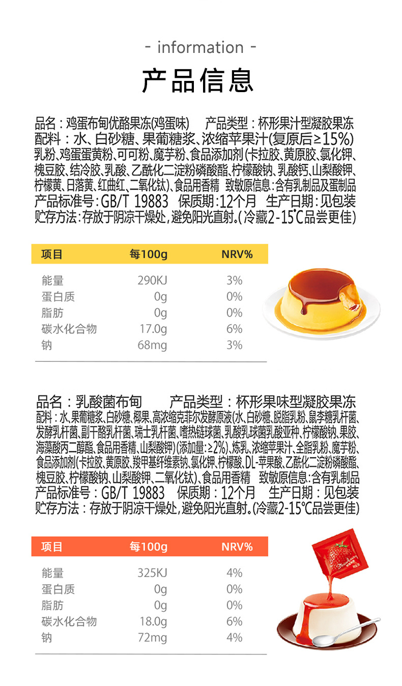 ![]() | Double layer egg pudding flavor 125g/cup | 6шт: ¥5.02, 29шт: ¥4.80, 44шт: ¥4.58 | 316 | 5905607218567 |