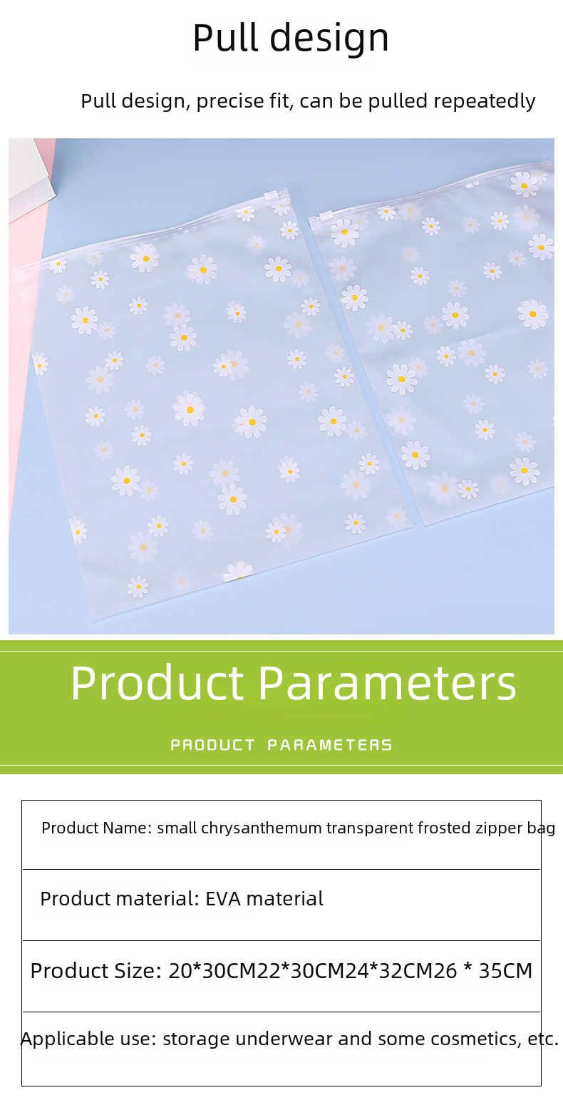 Пакет для одежды Little Chrysanthemum, пакет для нижнего белья, EVA пакет с застежкой-молнией, прозрачный матовый запечатанный пакет, пластиковый пакет с застежкой-молнией