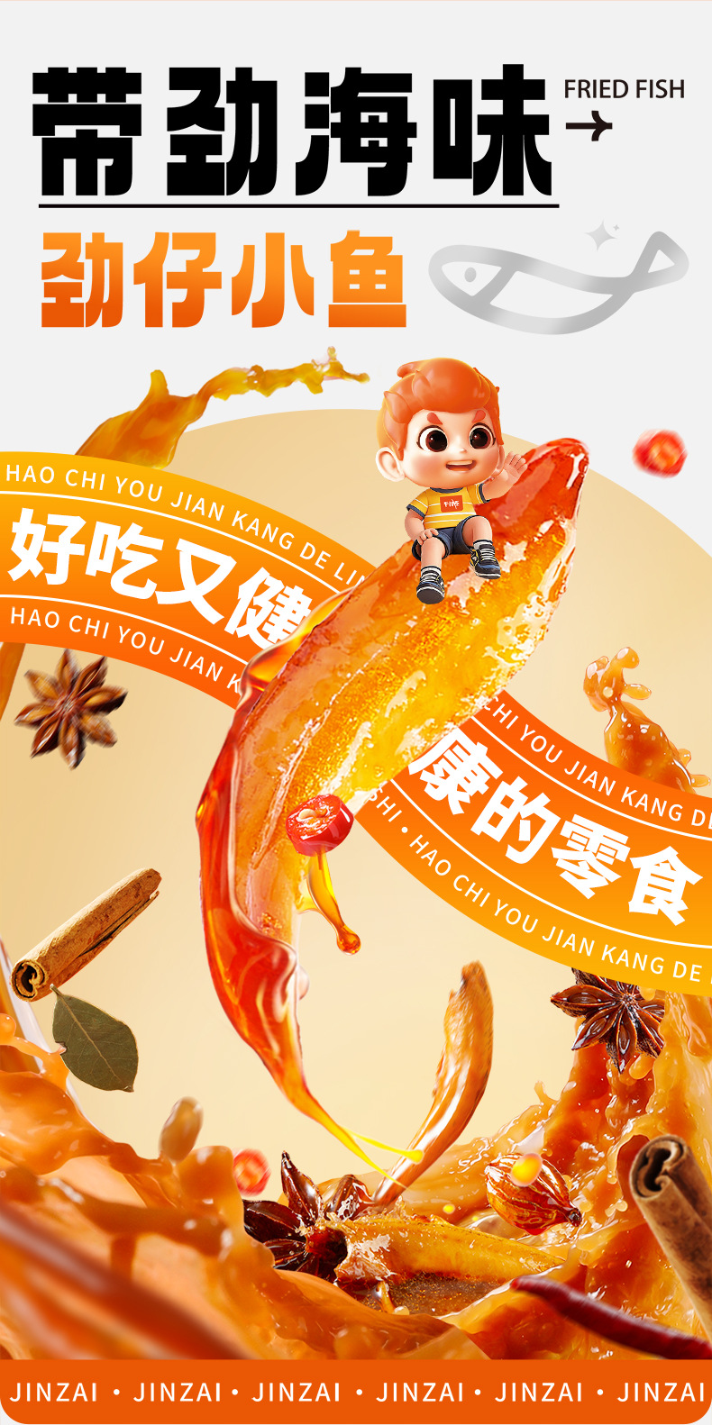 Jinzai маленькая рыба 15г * 20 упаковок острые сушеные морепродукты закуска оптом