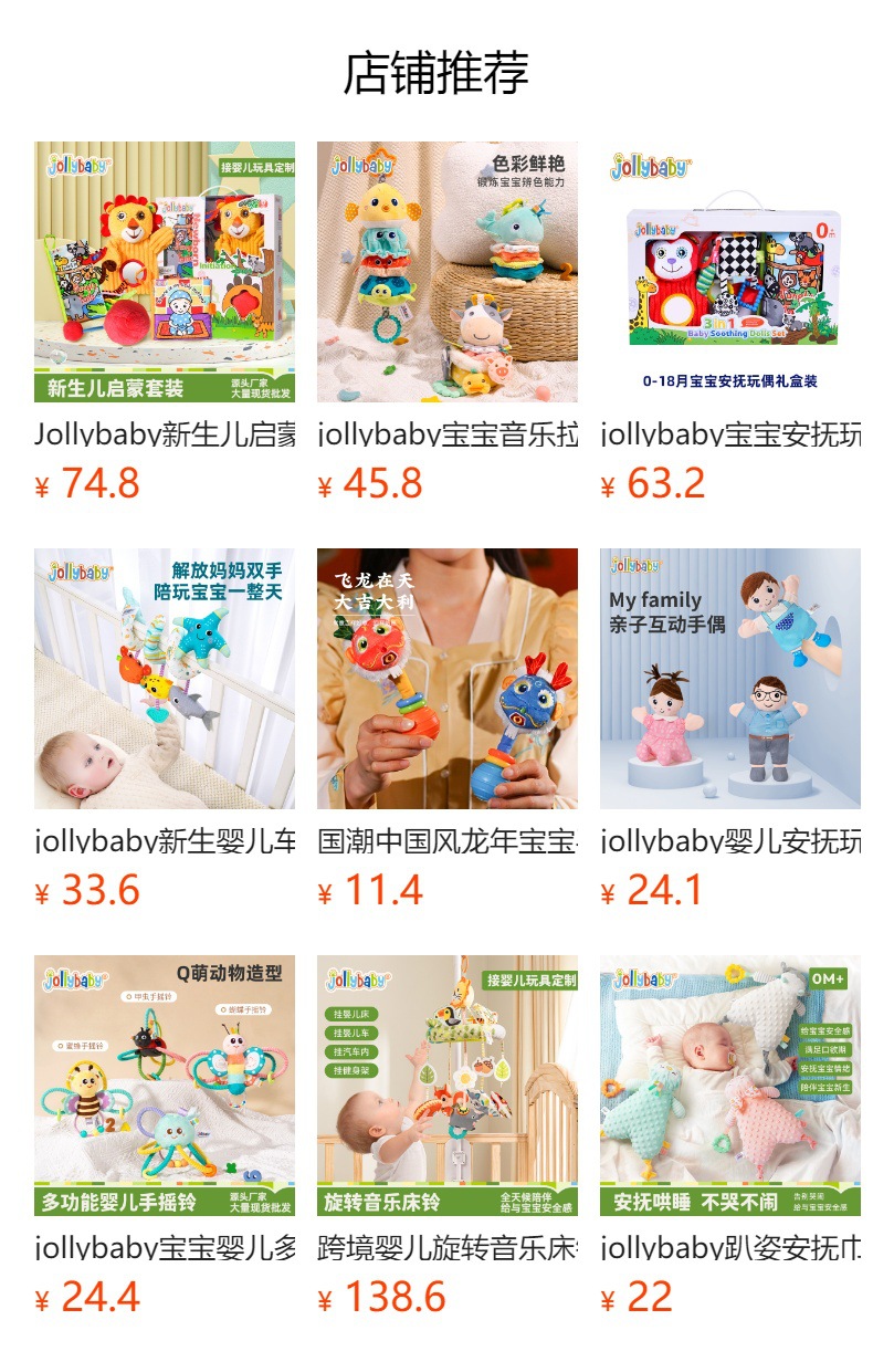 我司Jollybaby品牌官方旗舰店,源头厂家直营店铺,专注0-3岁婴幼儿益智布艺玩具,批量拿货可咨询客服更优惠哟