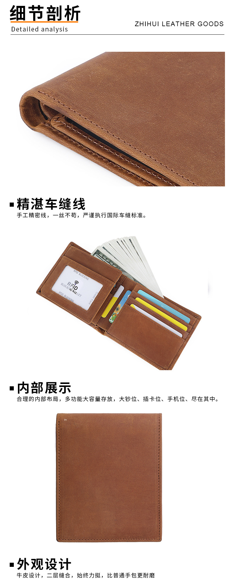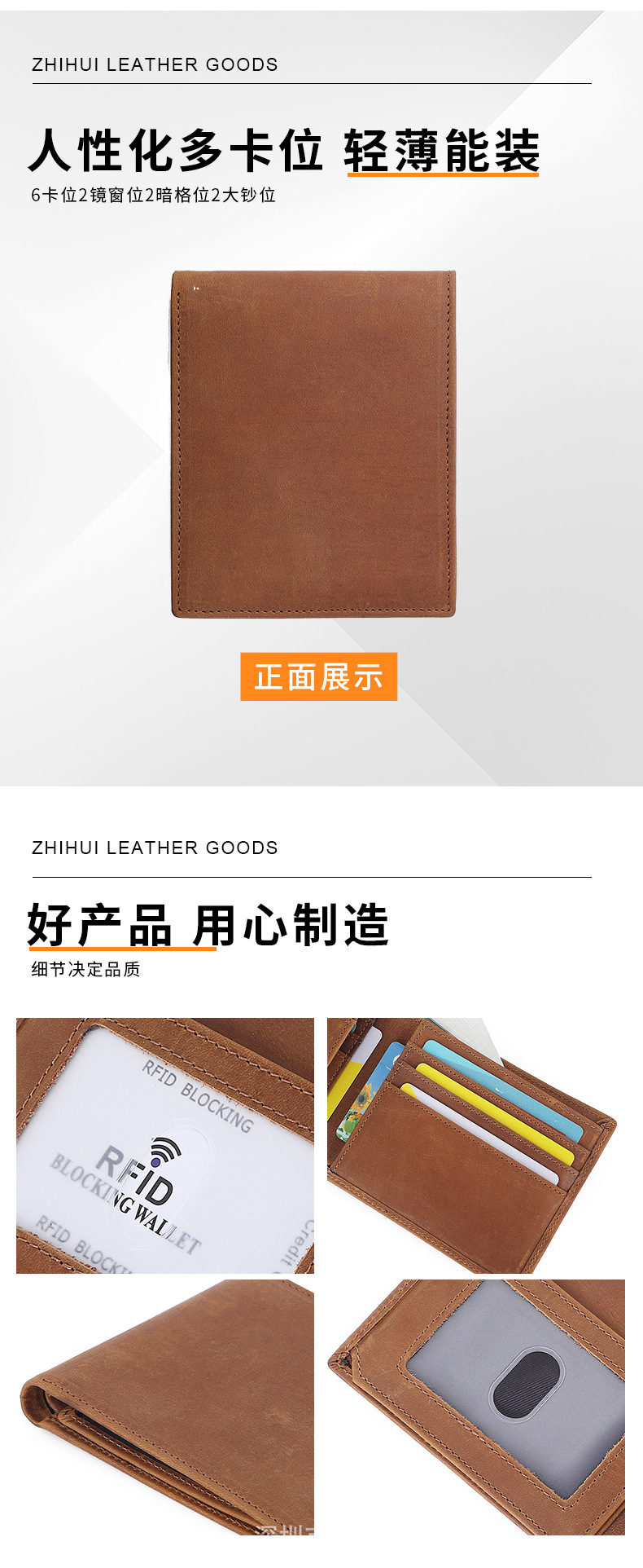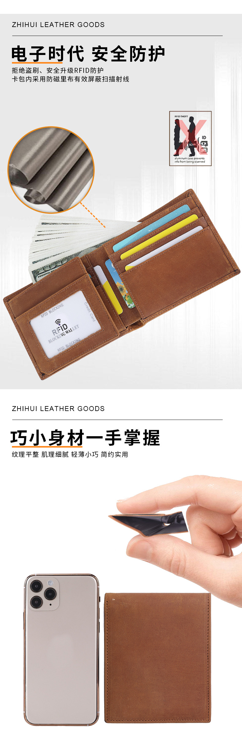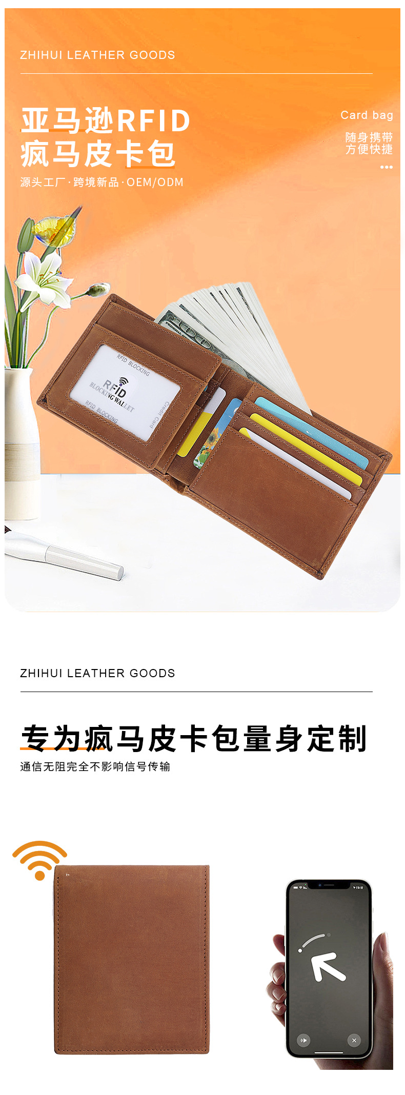 Хит продаж на Amazon, RFID мужской кошелек, сумка из кожи Crazy Horse, натуральная кожа, держатель для банковских карт