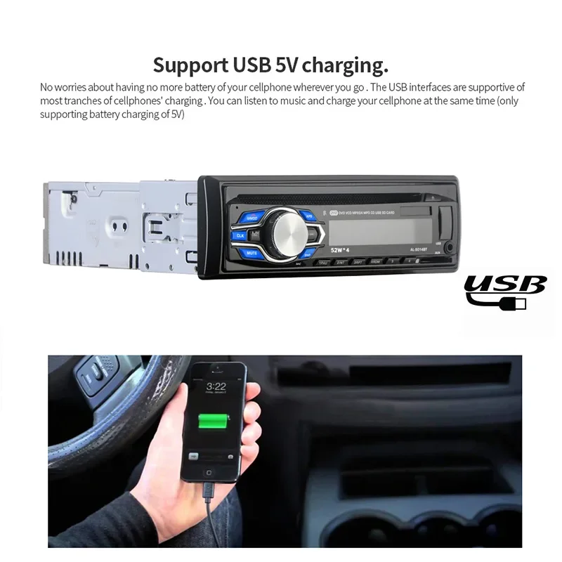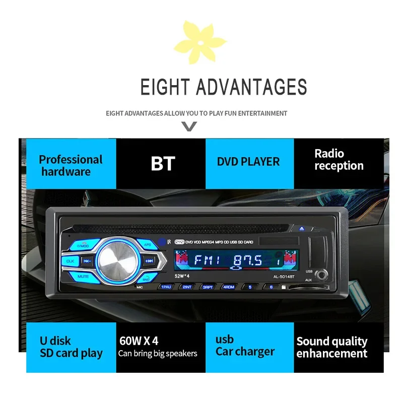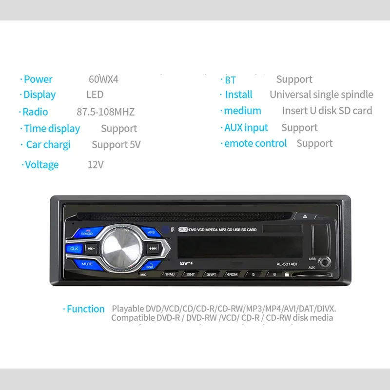 Автомобильный DVD плеер, карточный проигрыватель, радио, аудио, Bluetooth, Mp3 5014Bt