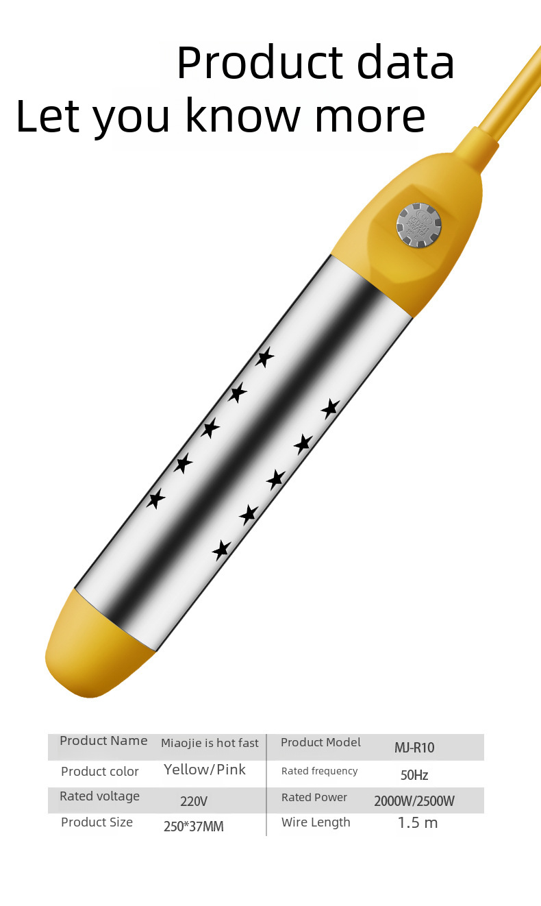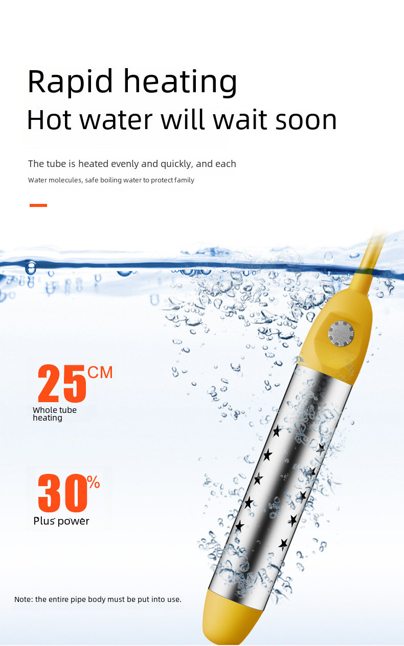 - High Power Efficiency:This fast-heating water rod boasts a high power efficiency of 2000/2500, ensuring quick and efficient heat distribution for your convenience.