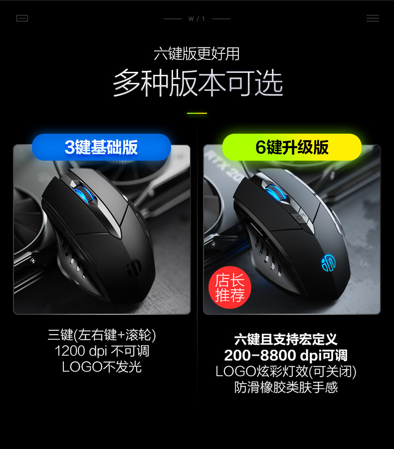 Проводная мышь Inphic Pw1, тихая, для игр E-Sports, шесть кнопок, бизнес, офис, светящаяся