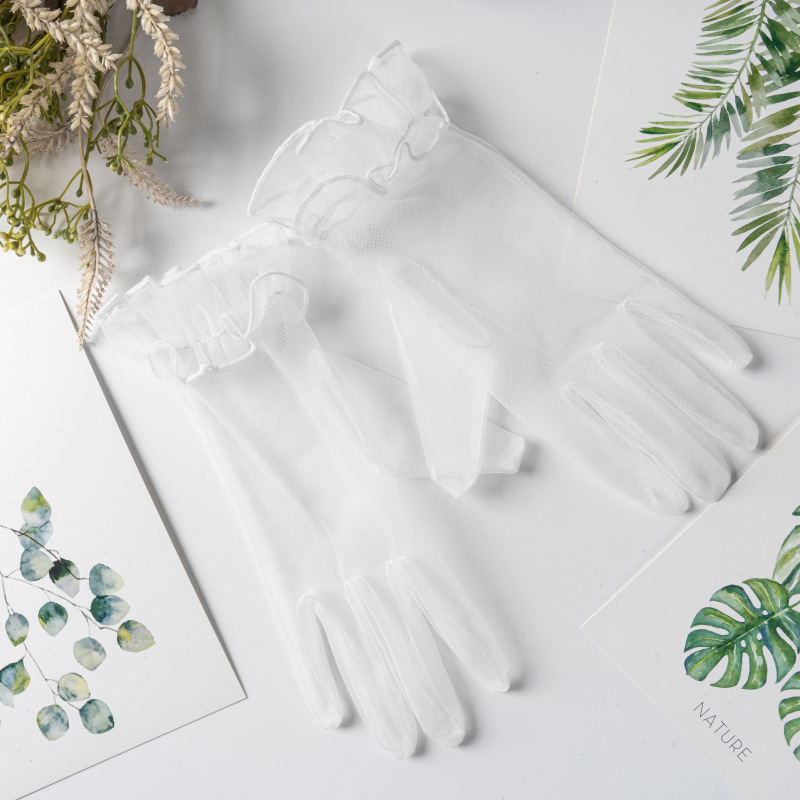 Корейские вечерние перчатки невесты, рюши, сетчатые сексуальные перчатки для Хэллоуина и балов